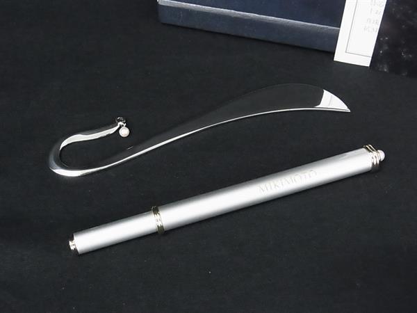 ■極美品■ MIKIMOTO ミキモト 本真珠 キャップ式 ボールペン ブックマーカー 栞 筆記用具 文房具 シルバー系 DH9674