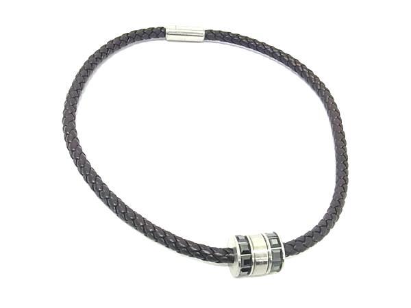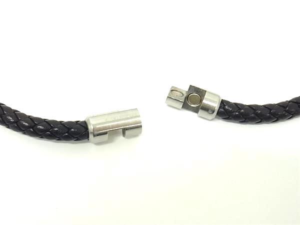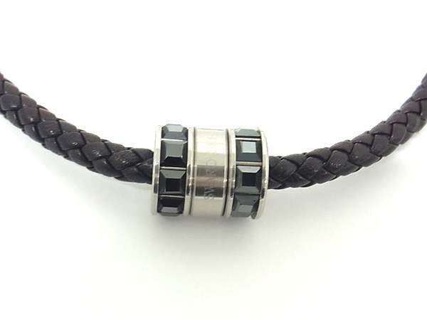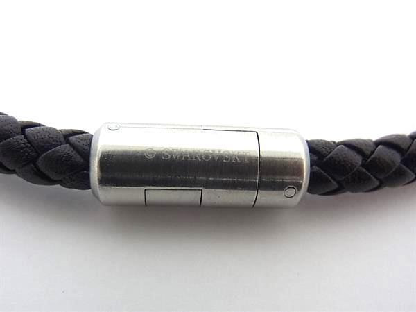 ■美品■ SWAROVSKI スワロフスキー レザー ラインストーン ネックレス ペンダント アクセサリー ブラック系×シルバー系 DK4429
