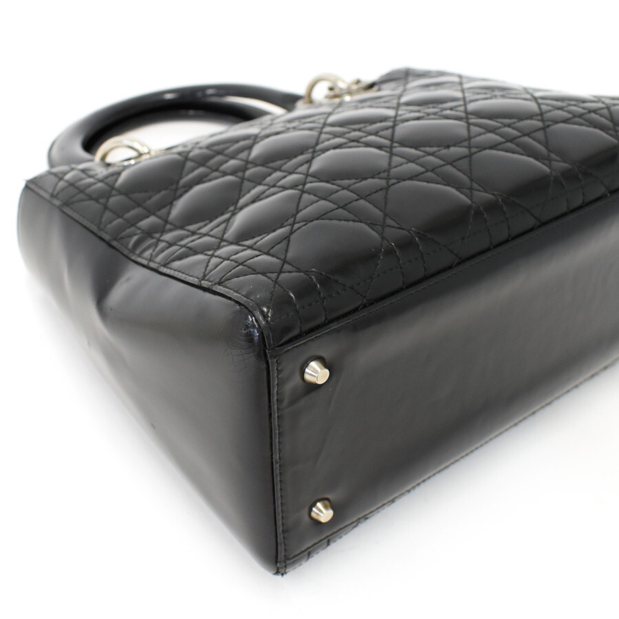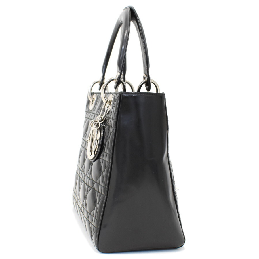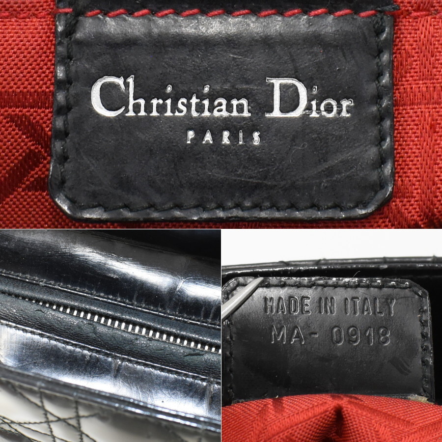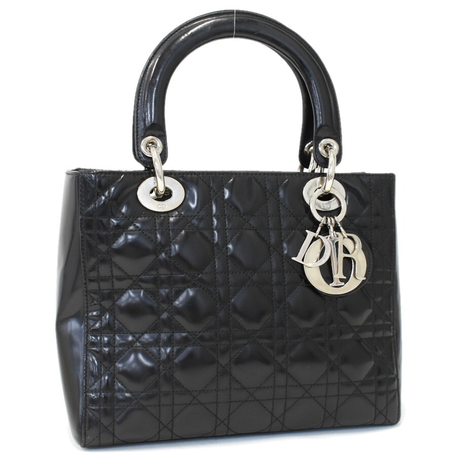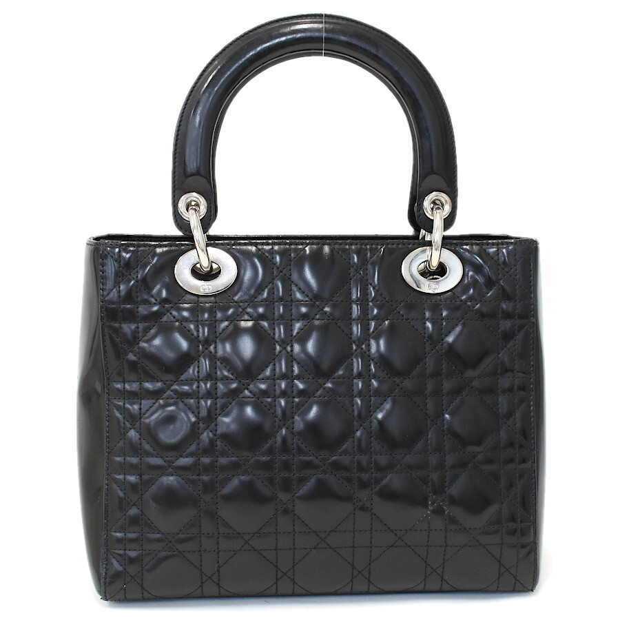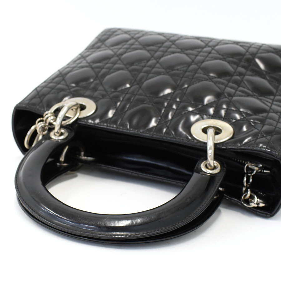 1円◎良品/Christian Dior/クリスチャンディオール/ハンドバッグ/レディディオール/スモール/カナージュ/パテント/ブラック◎E.Cer.tI-12