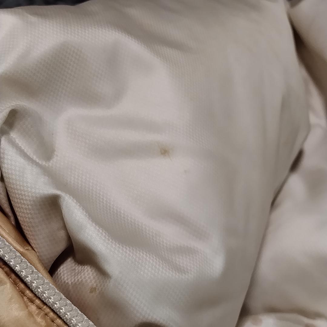 左袖に汚れがございます。その他袖口・襟横・裾・身頃部分など、目立ちませんが小さな汚れがございます。