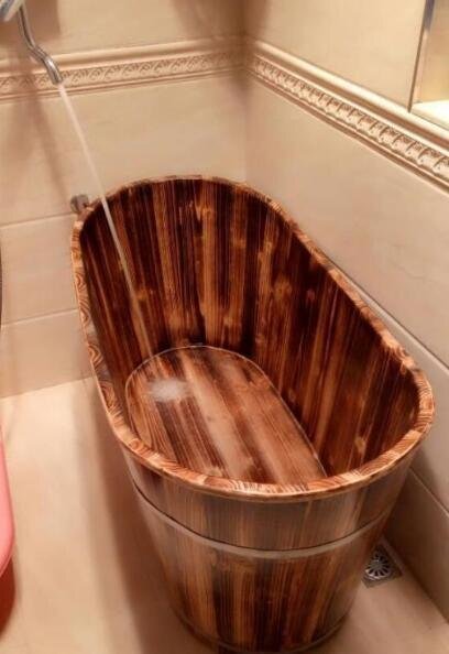 新作★ 高品質 実用品★厚い シャワーバケツ 木製 美容院 お風呂 成人 風呂バケツ サウナ 家庭用