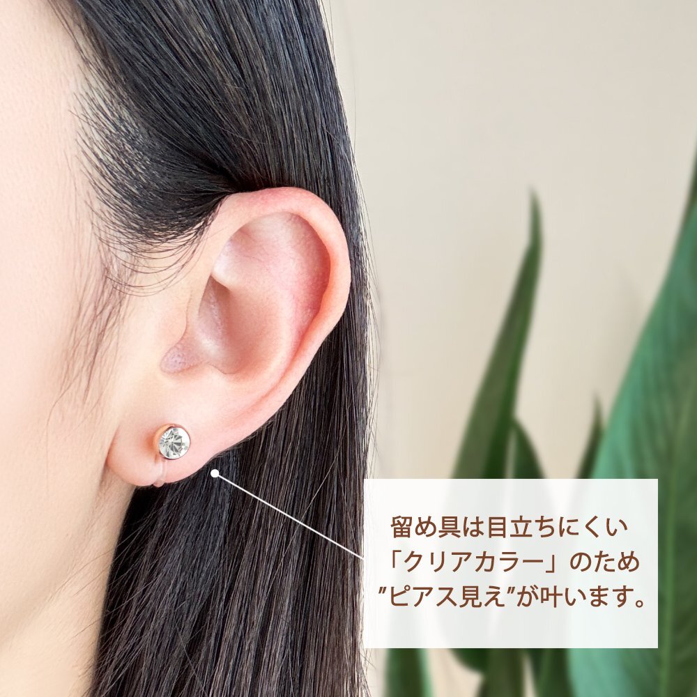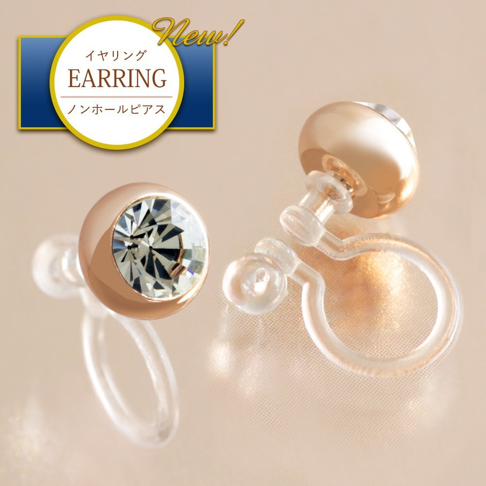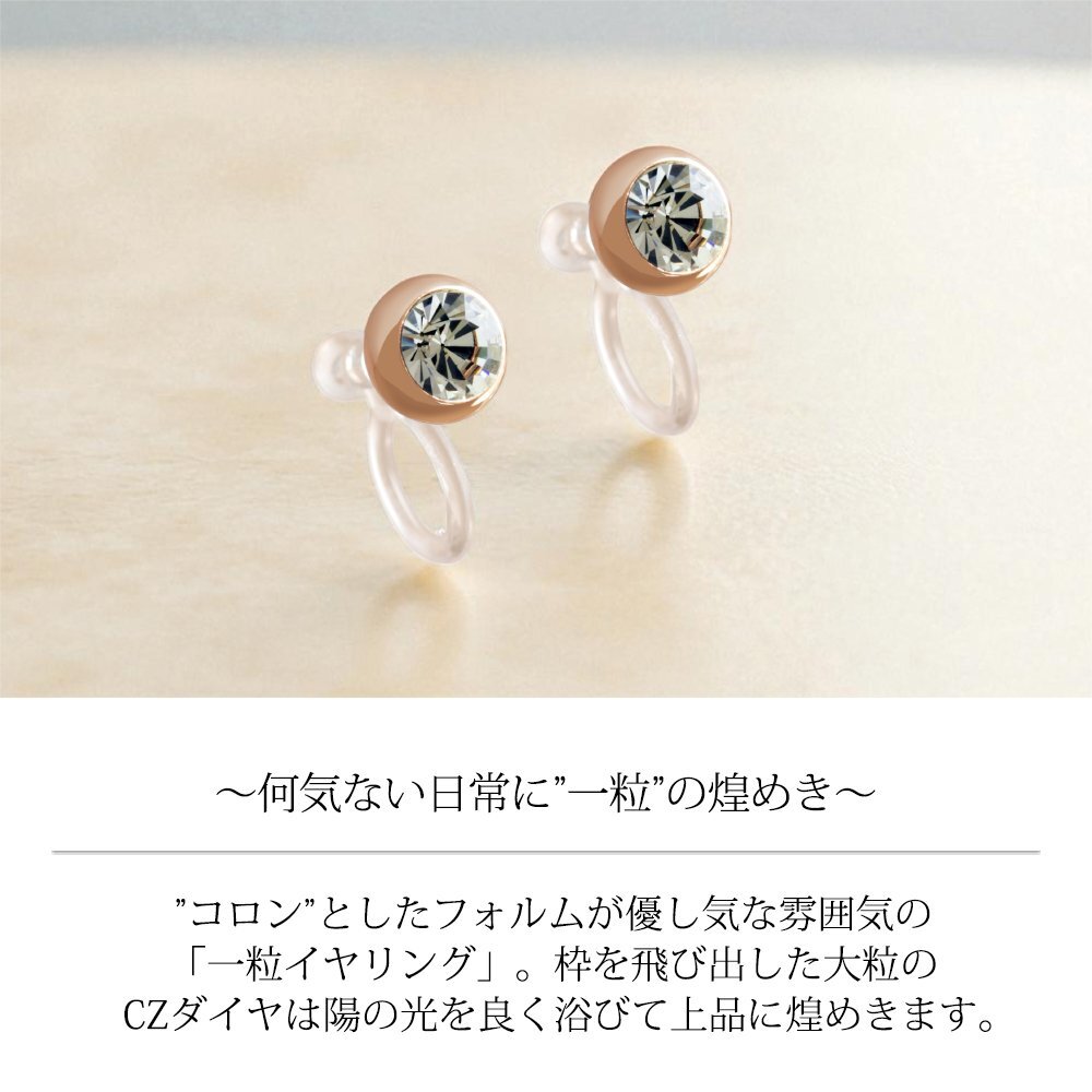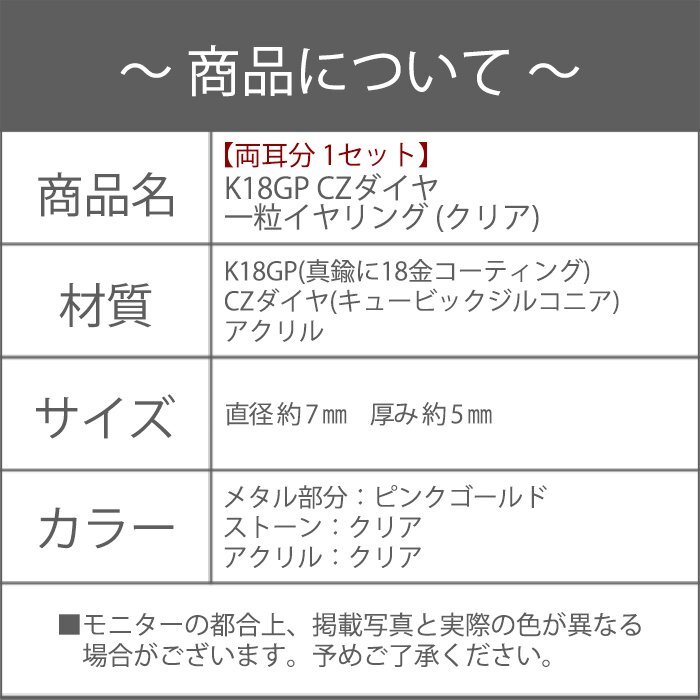 新品/イヤリング/K18GP/レディース/クリア/一粒/ダイヤ/CZ/18金/18kコーティング/ピンクゴールド/小ぶり/ピアス見え/樹脂/金属アレルギー