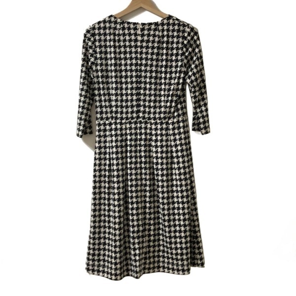 レリアン Leilian サイズ7 S - アイボリー×黒 レディース クルーネック/七分袖/ひざ丈/千鳥格子柄 ワンピース