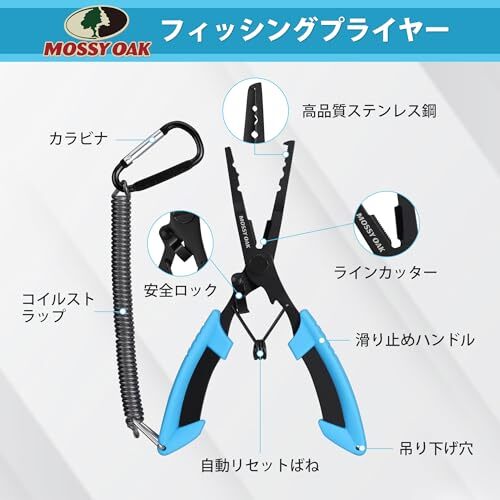 Mossy Oak フィッシングプライヤー フィッシュグリップ 2点入 フィッシュキャッチャー フィッシュグリッパー 釣り用ペンチ 魚バサミ 魚つかみ フィッシングツールキット 釣り具セット ステンレス 多機能 淡水海水 海釣 ストラップ付き 専用収納袋付き