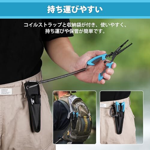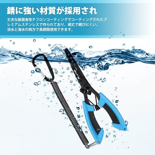 【高品質な素材】このフィッシングプライヤーとフィッシュグリップは、高品質的なステンレススチールで作られており、頑丈で錆びにくい、耐水性と耐腐食性が優れて設計されています。淡水でも海水でも使えます。