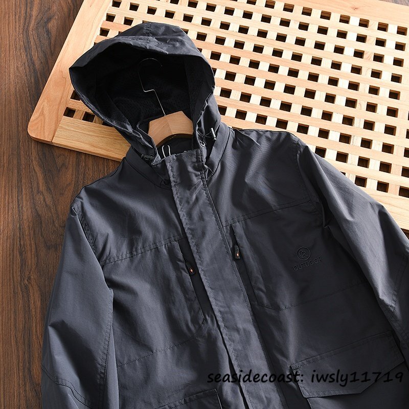 新品◆アウトドア ジャケット メンズ フード付き 春秋 マウンテンパーカ 胸ポケット 防風防寒 撥水 アウター 登山 カジュアル ブラック M