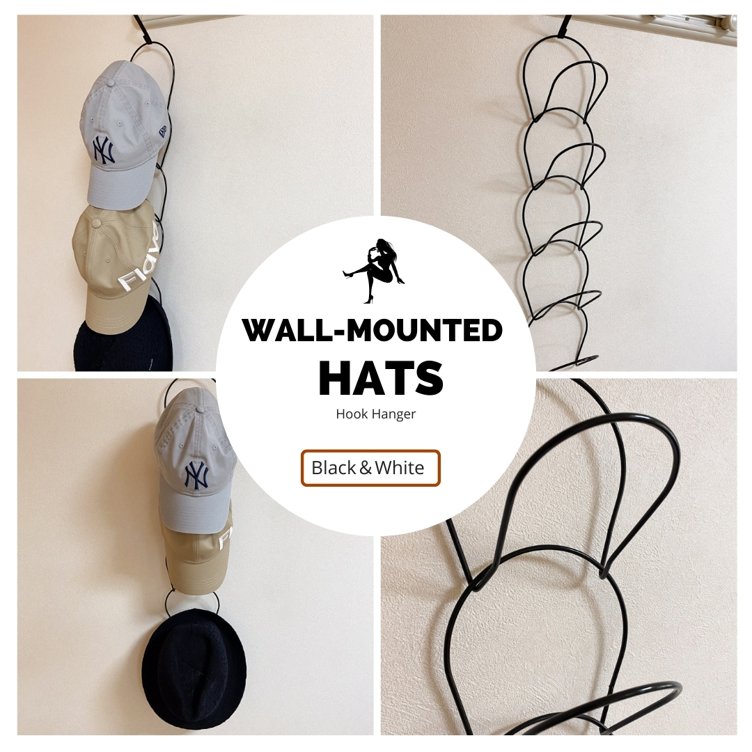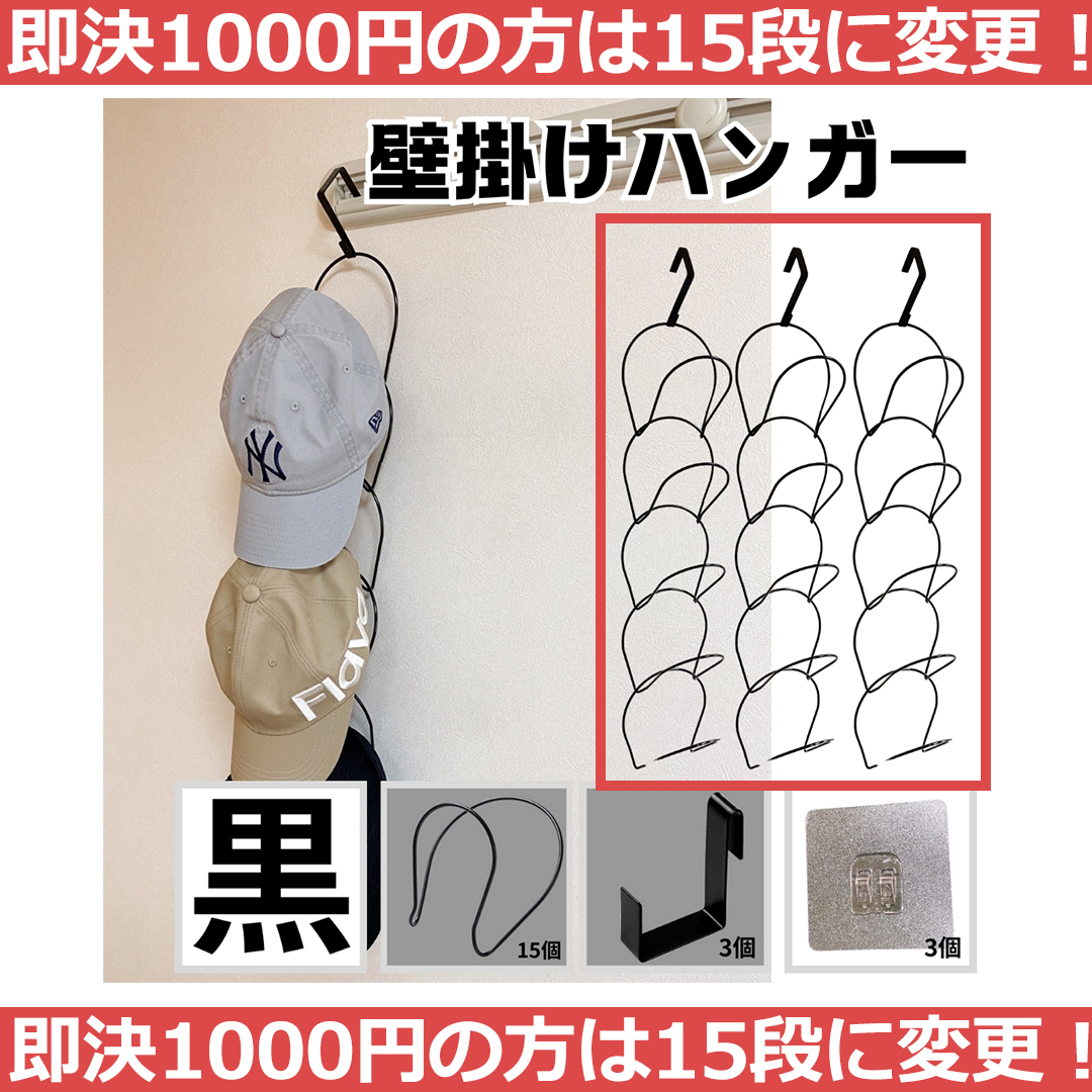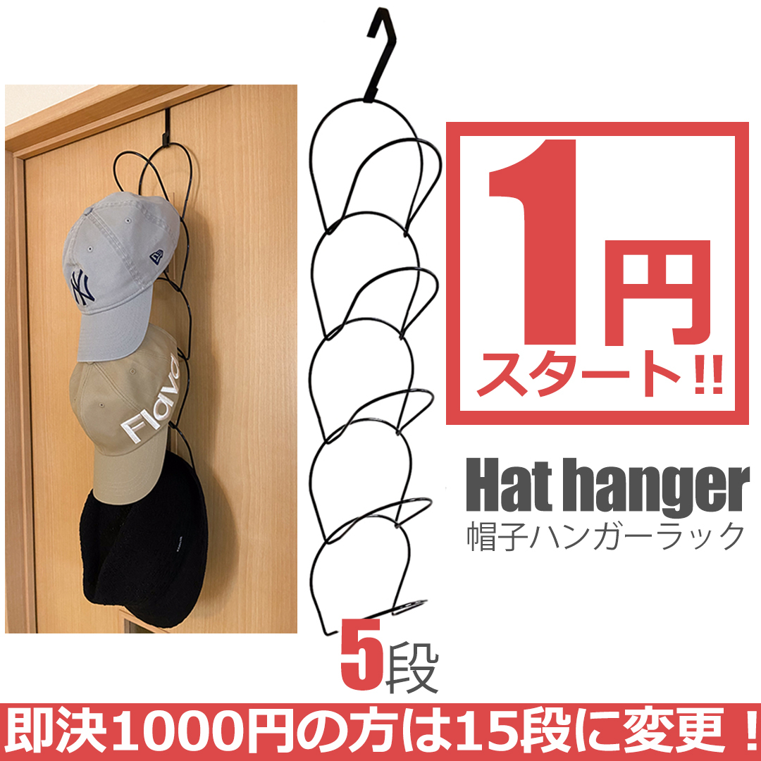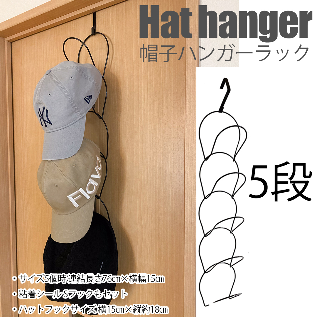 1円スタート! ◆新品◆ 帽子ハンガー 収納 帽子掛け 帽子収納 吊り下げ 見せるハンガー ウォールハンガー 黒ブラック 5点