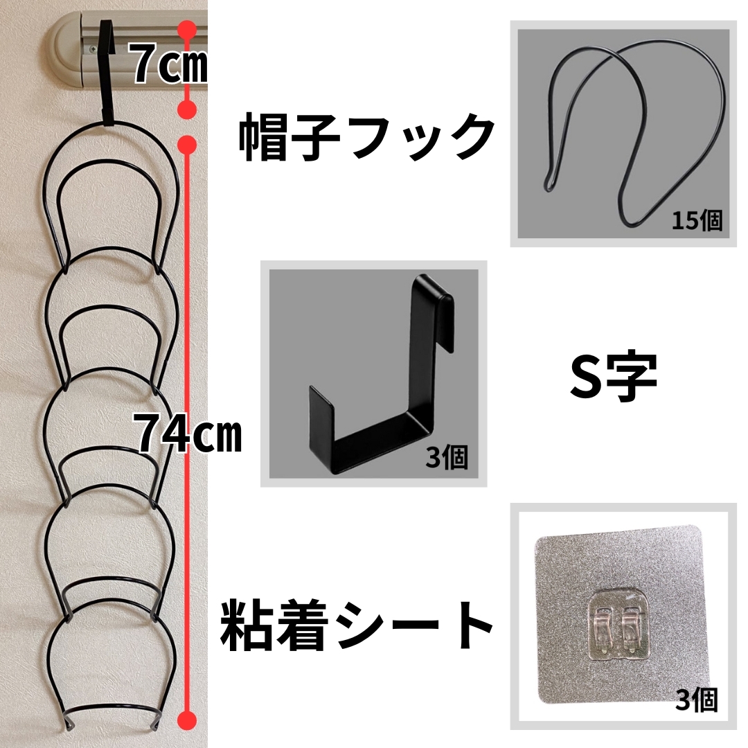 ・帽子フック5個 ・粘着シール1個 Sフック1個