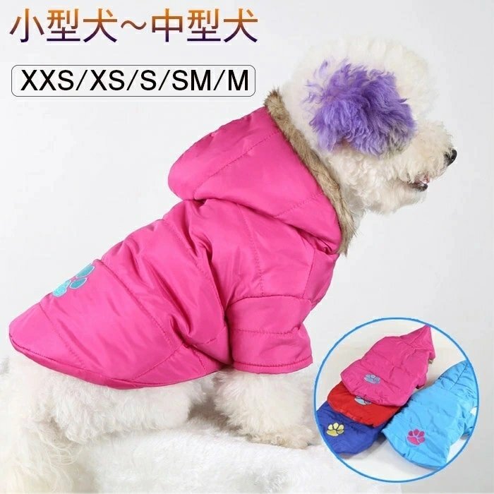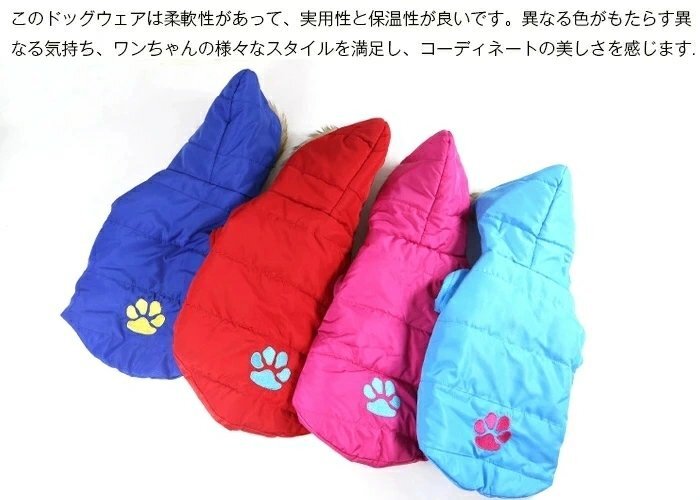 犬服 ドッグウェア ペット服 ベスト フード付き 綿入れ 犬服 コットンコート 二つの足 ペット用品 洋服 小中型犬☆4色選択可/1点