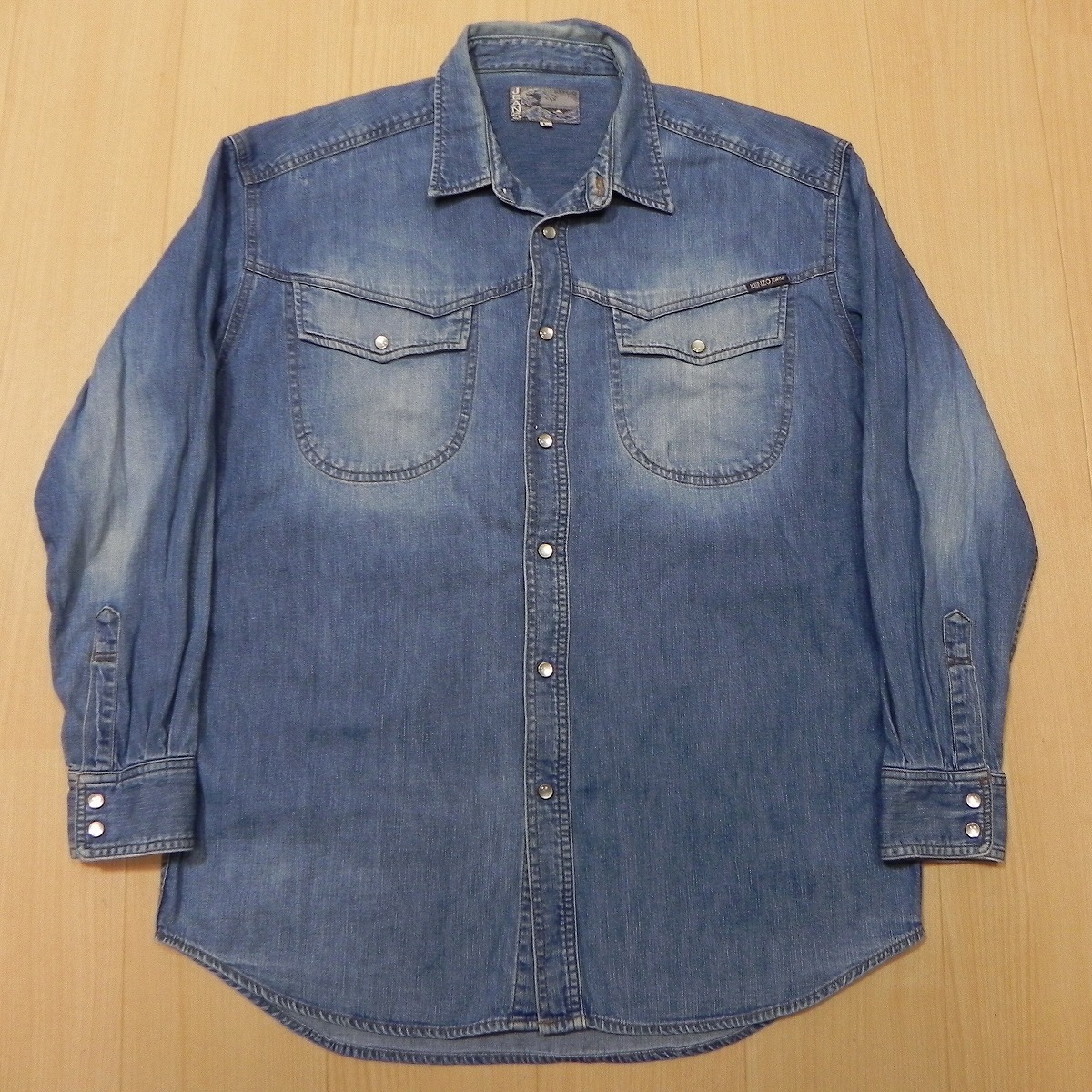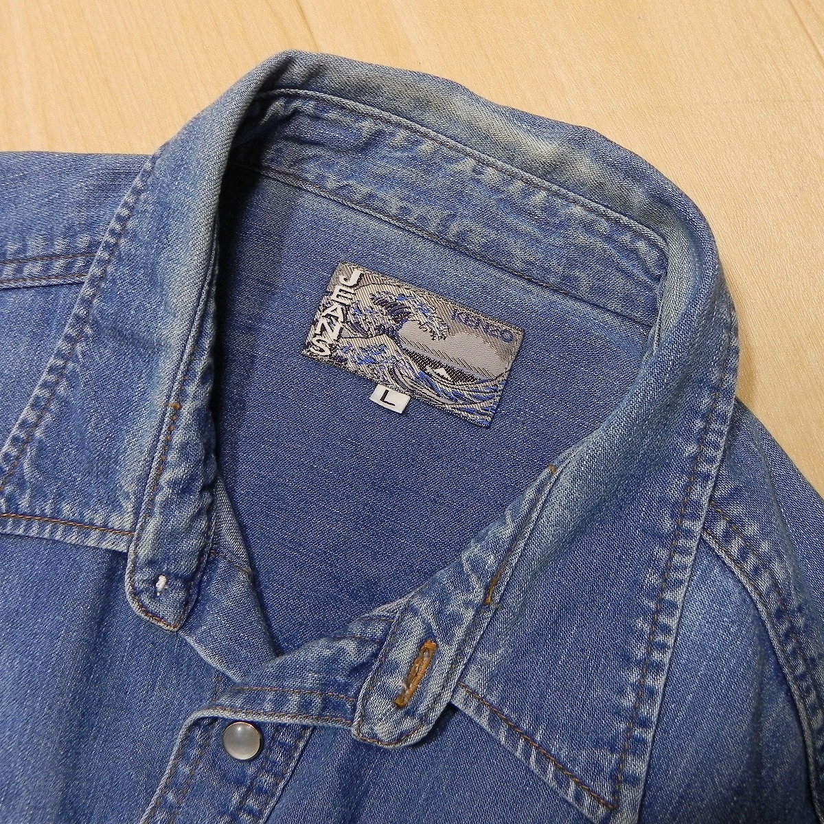 ★ 90s KENZO JEANS ケンゾー ジーンズ 北斎タグ インディゴ デニムシャツ L 長袖 スナップボタン 古着 ★d