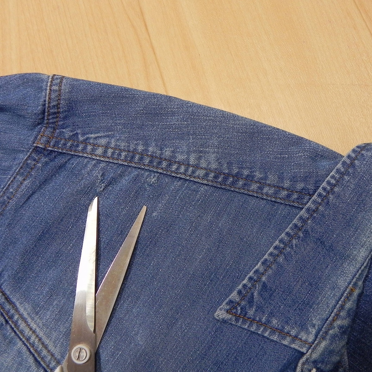 ●あくまでも古着のため、ノークレームノーリターンでお願いいたします。使用感がございます。 カラーはインディゴで、襟に薄汚れがございます。右肩付近に小穴がございます。