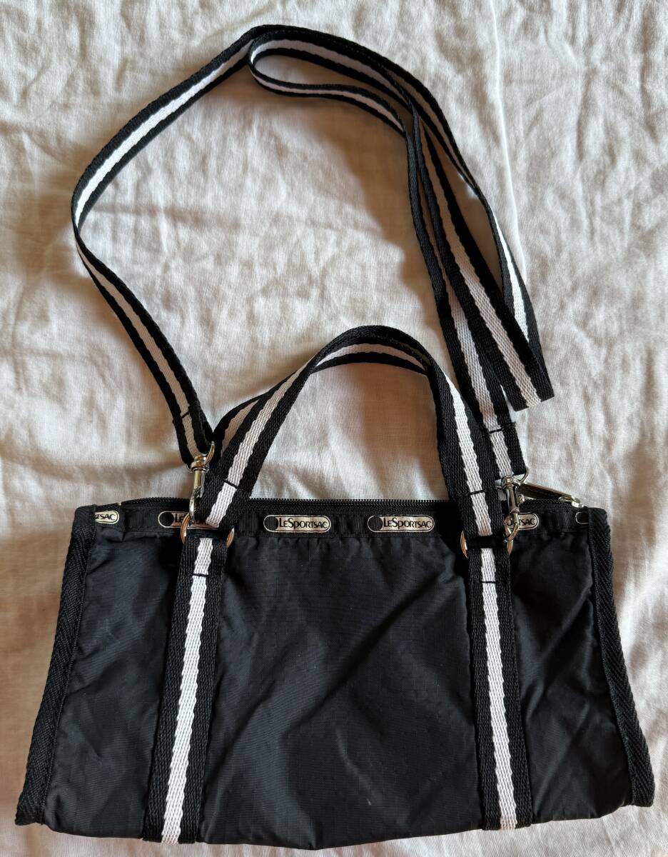 レスポートサック ショルダーバッグ ポーチ 黒 ストライプ 白 定番 ハンドバッグ