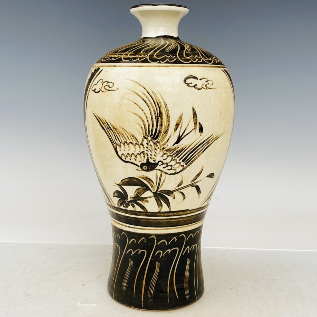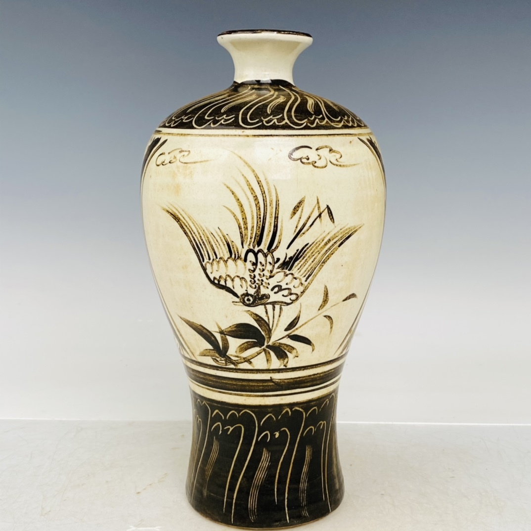 | 中国磁器 陶芸 磁器『磁州窯花鳥紋梅瓶です』施釉陶 古代工芸品 陶芸 精美彫 置物 收藏品 | |||