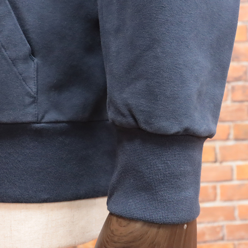 ドロップショルダー、カンガルーポケット、ウォッシュ&製品染め加工