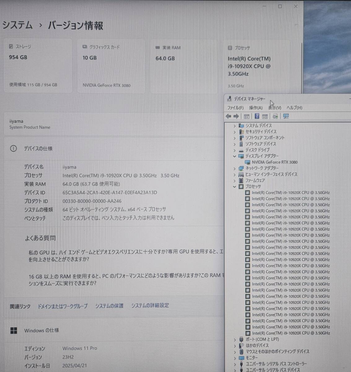 ゲーミングPC Intel Core i9-10920X(i7-12700より性能↑)水冷 メモリ64GB SSD1TB NVIDIA GeForce RTX3080 画像生成AI CADソフト 動画編集