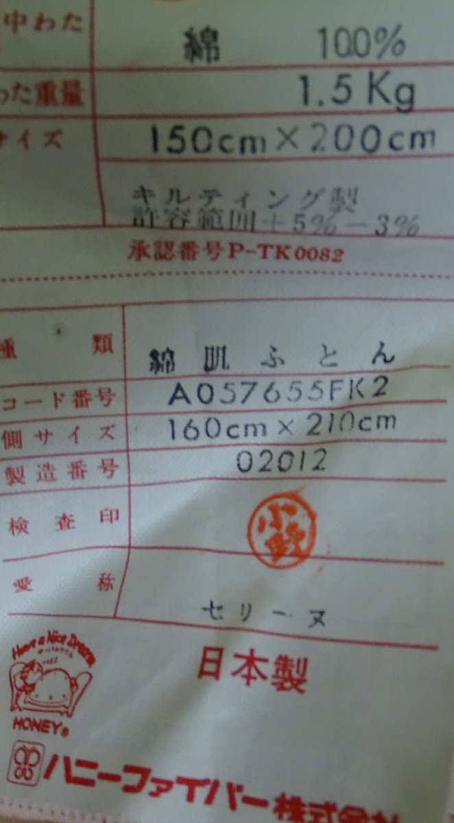 ・品名: 綿肌ふとん ・フィバーフィバー・日本製素材:綿100%・NO-R6-10-5.8