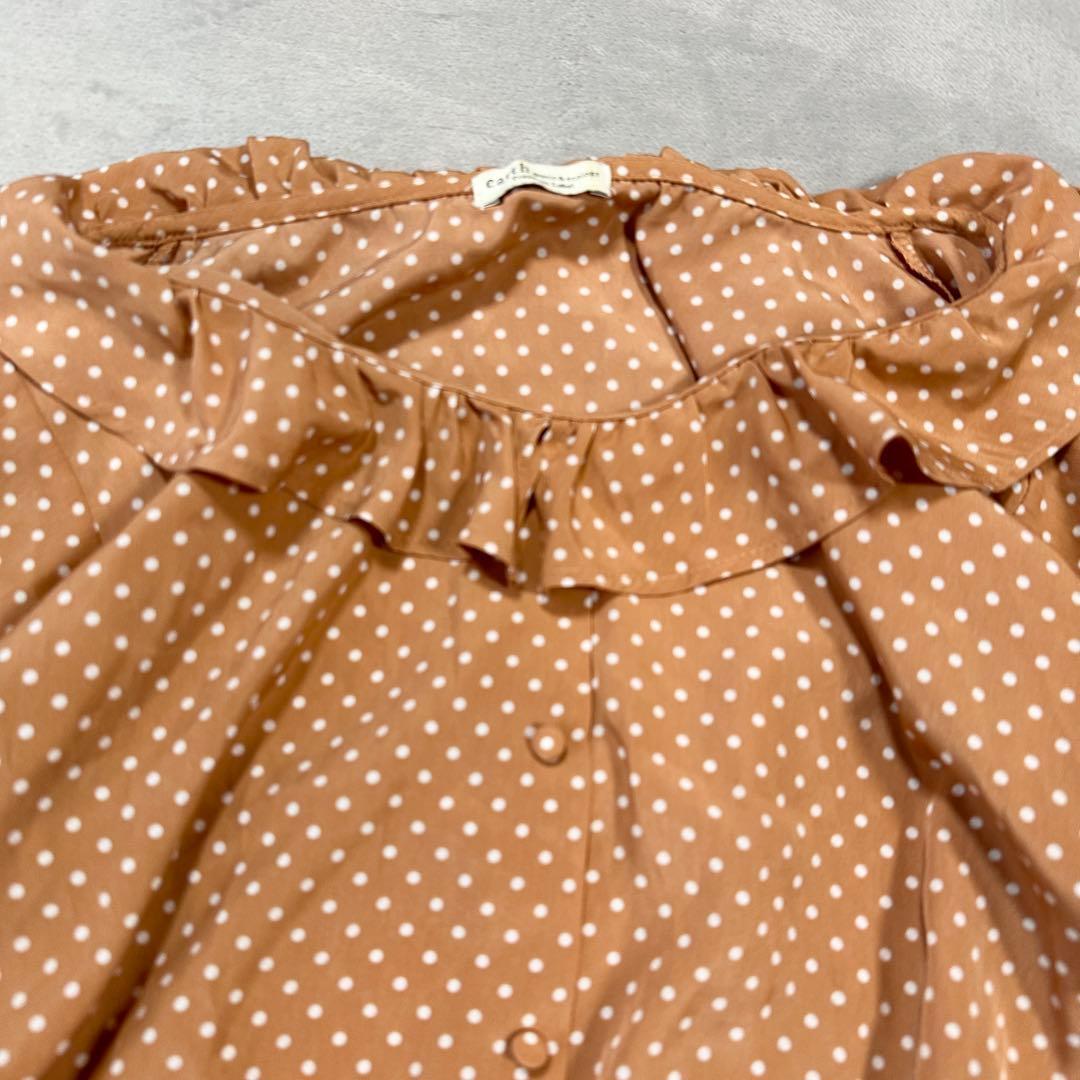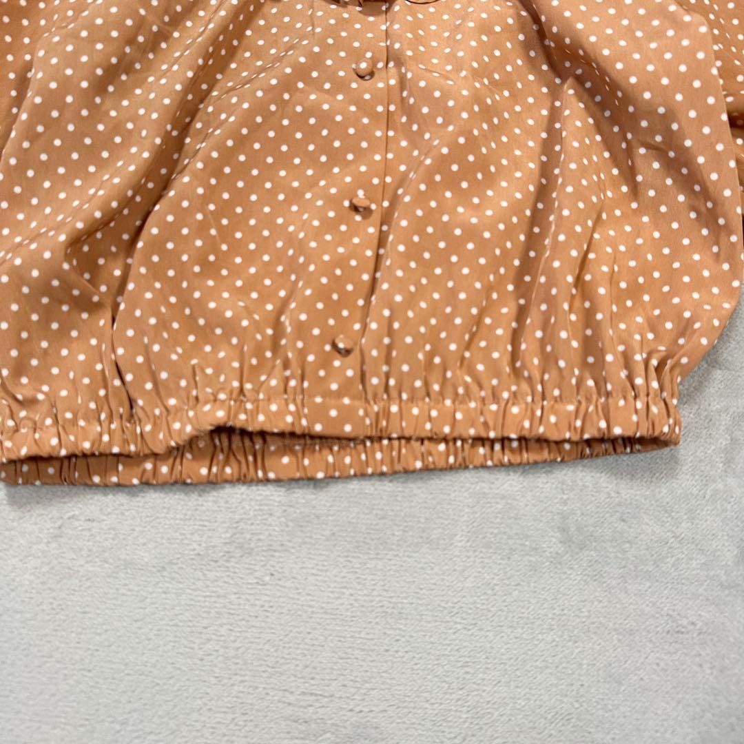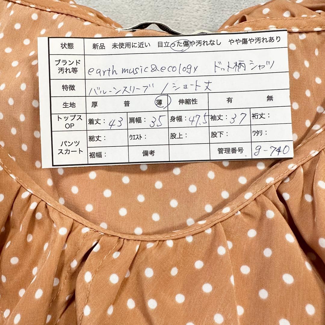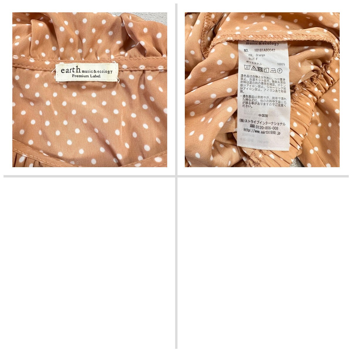アースミュージック&エコロジー ドット柄ブラウス シャツ 五分袖 オレンジ F 76BDA6