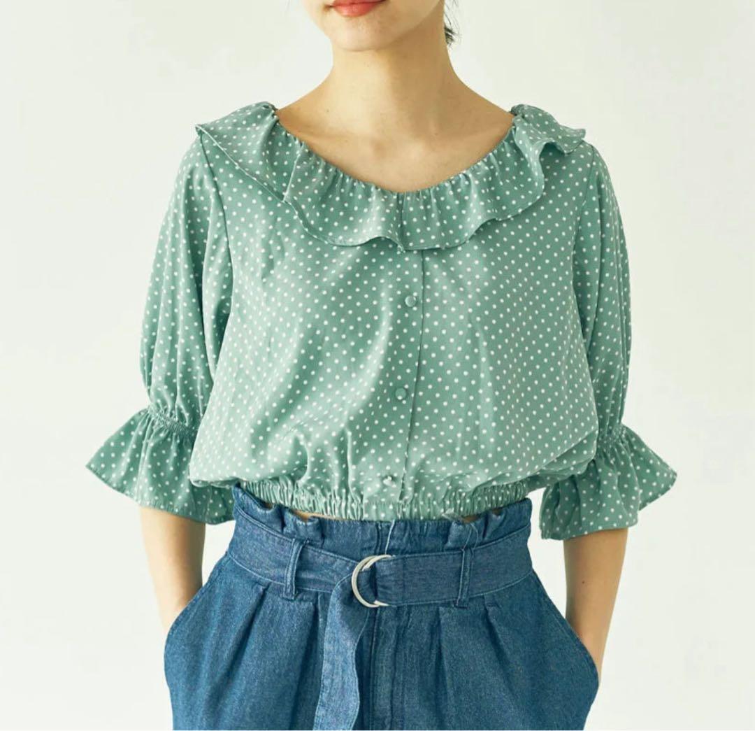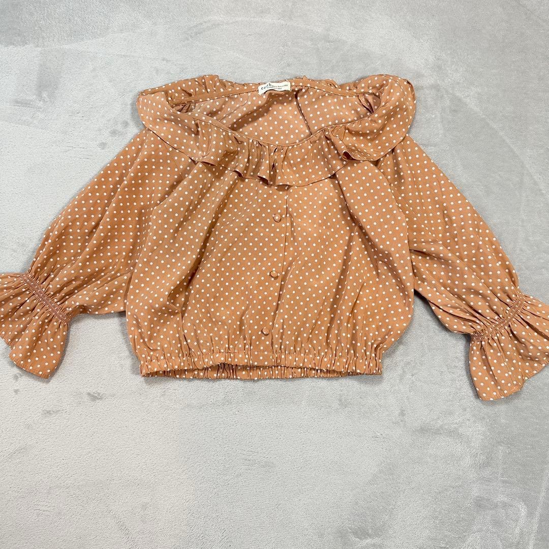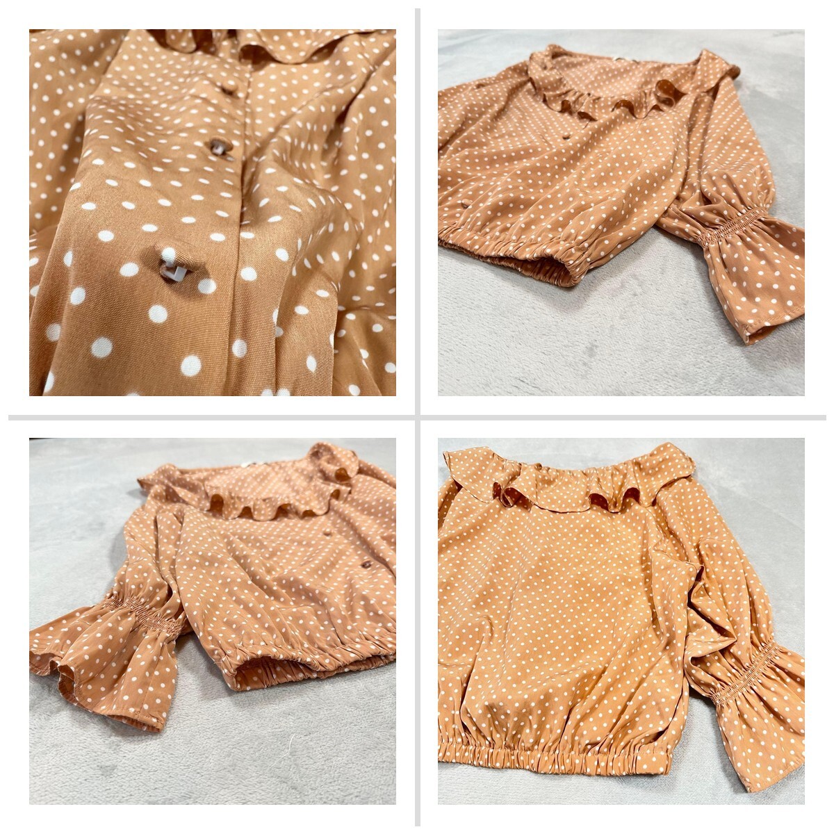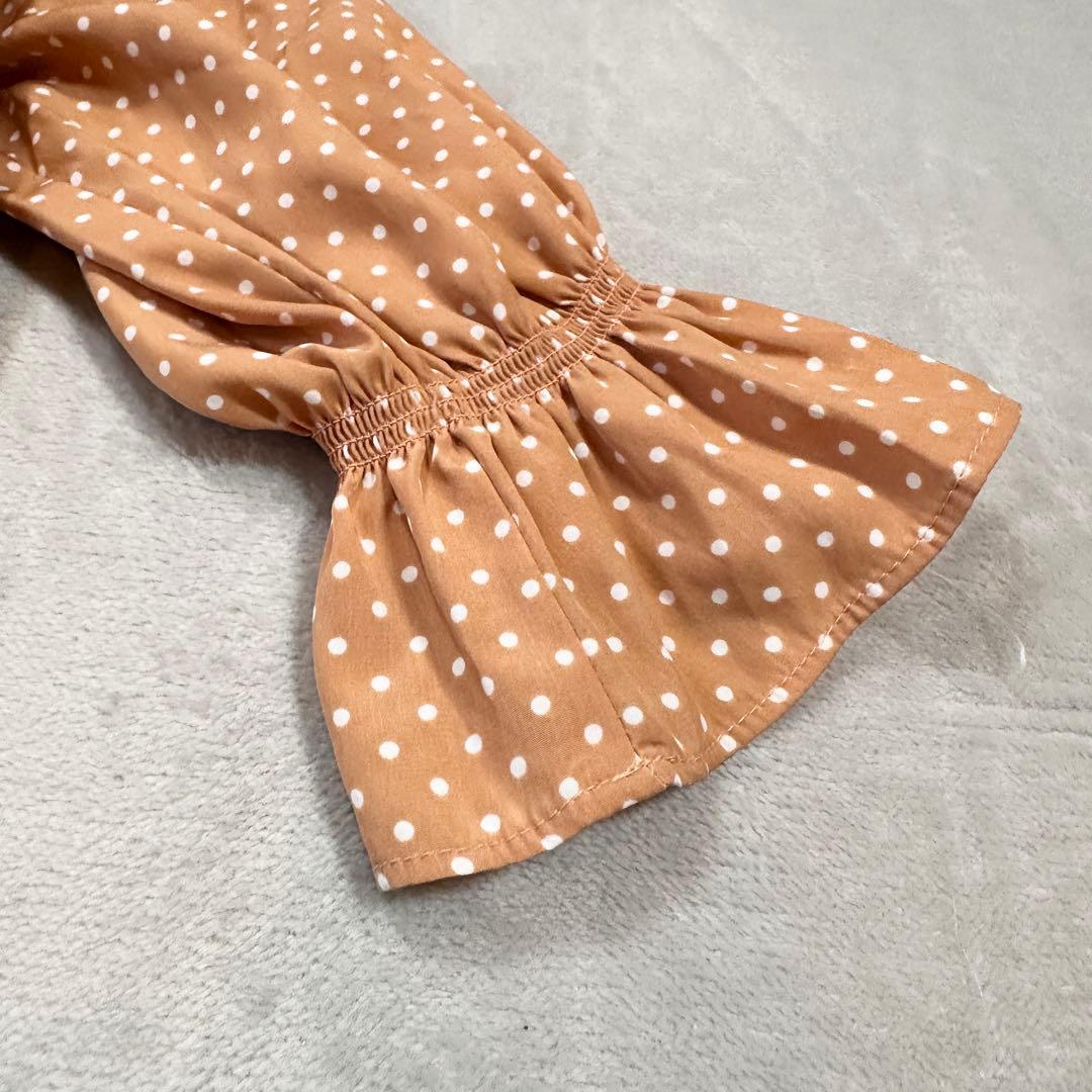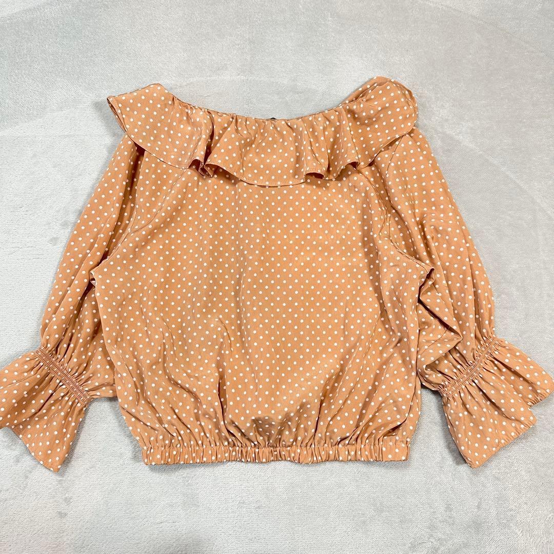 アースミュージック&エコロジー ドット柄ブラウス シャツ 五分袖 オレンジ F 76BDA6