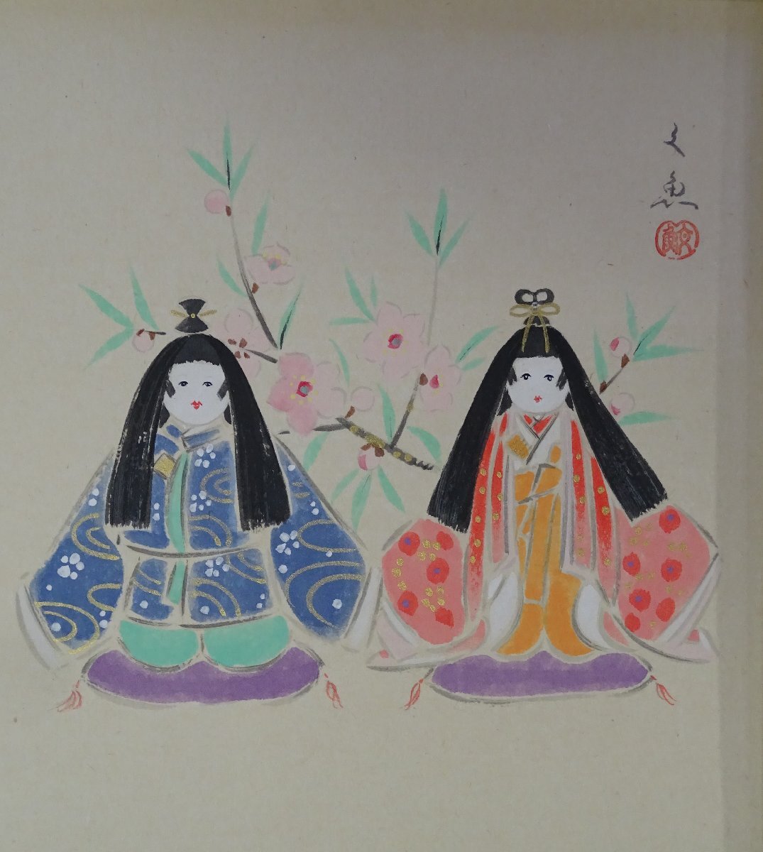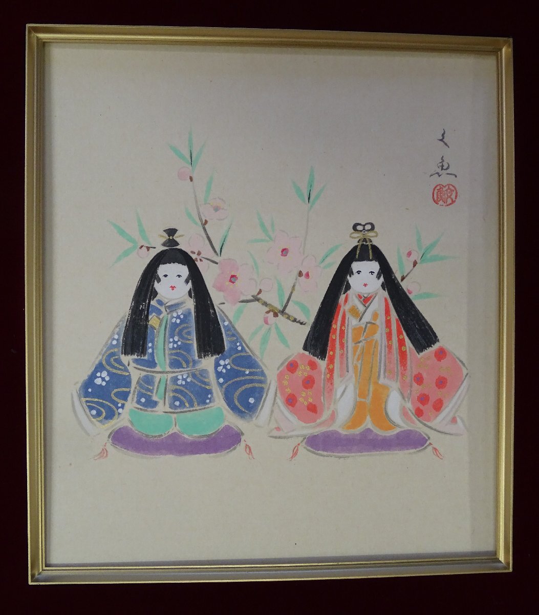 ・作者: 中谷 文魚 ・画題: 立雛 ・技法: 色紙絵 ・手描き No R6-1-12.8