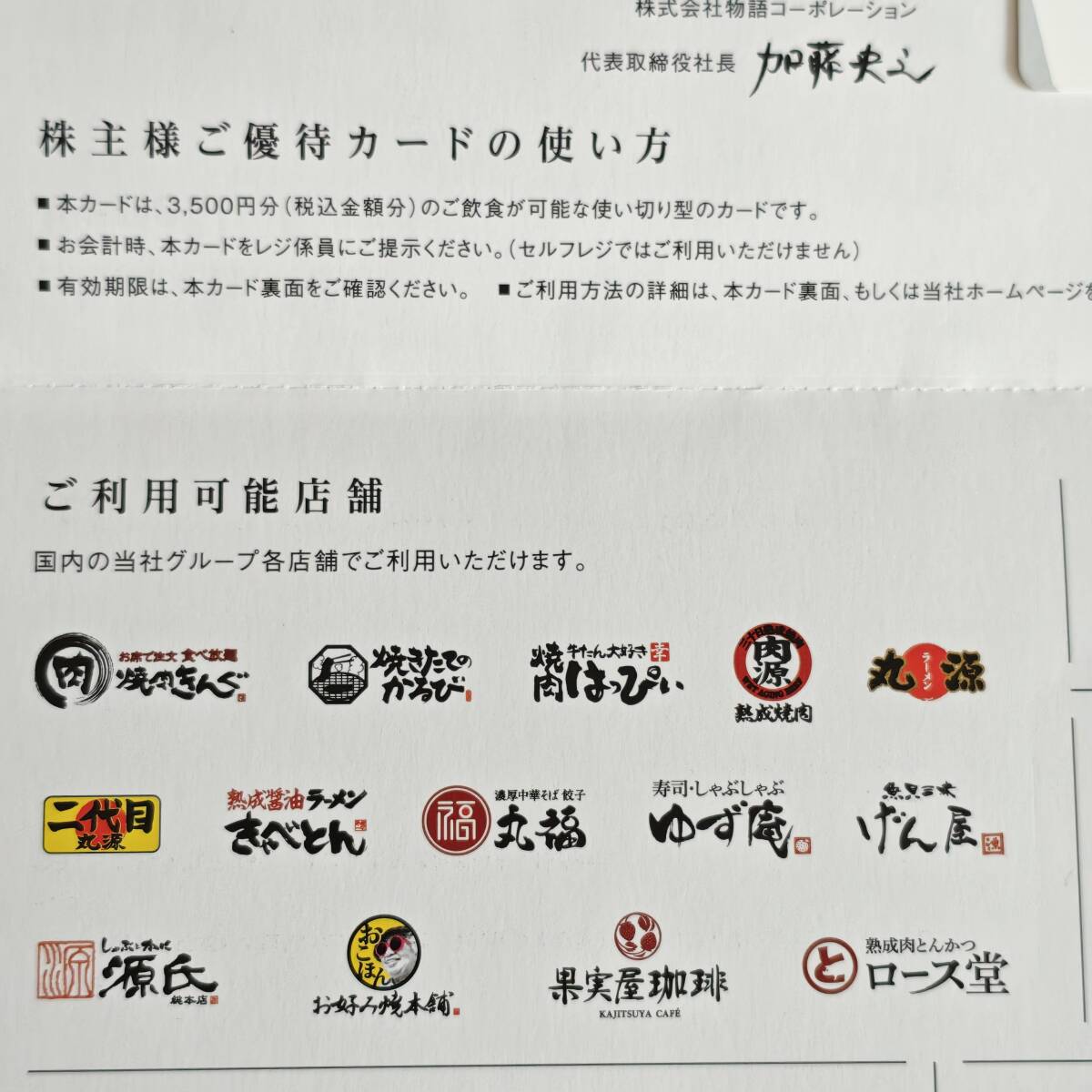 物語コーポレーション 株主優待カード 7000円分 (3500円x2枚)株主優待
