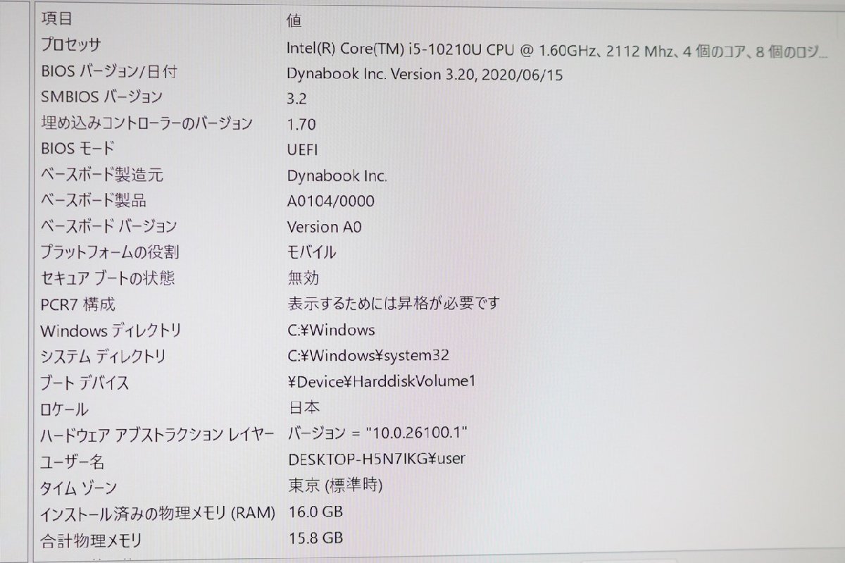 N 2【i5第10世代】TOSHIBA / dynabook G83/FP / CPU:core i5-10210U@1.60GHz /メモリ:16GB / SSD:256GB / OS:Windows11 Pro