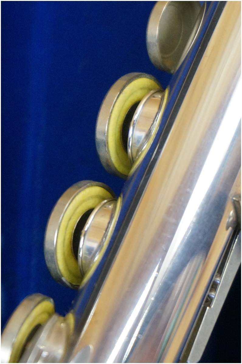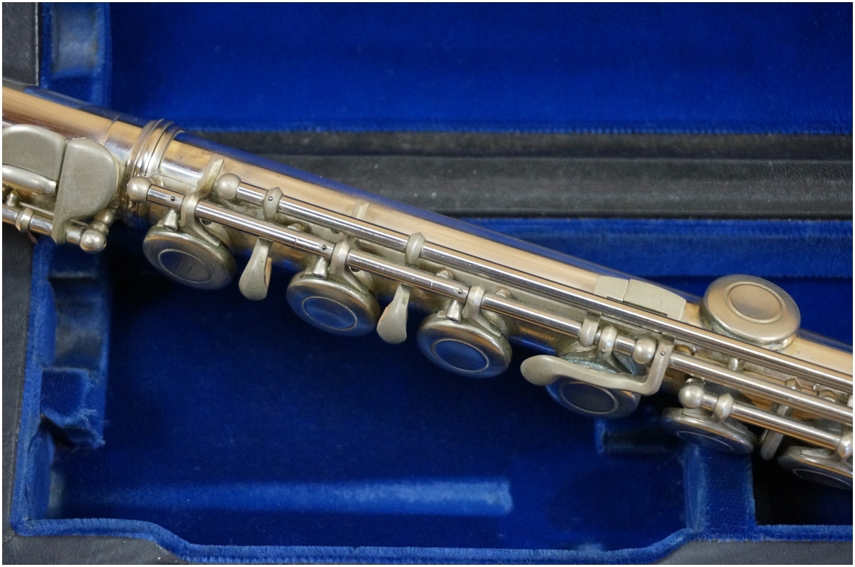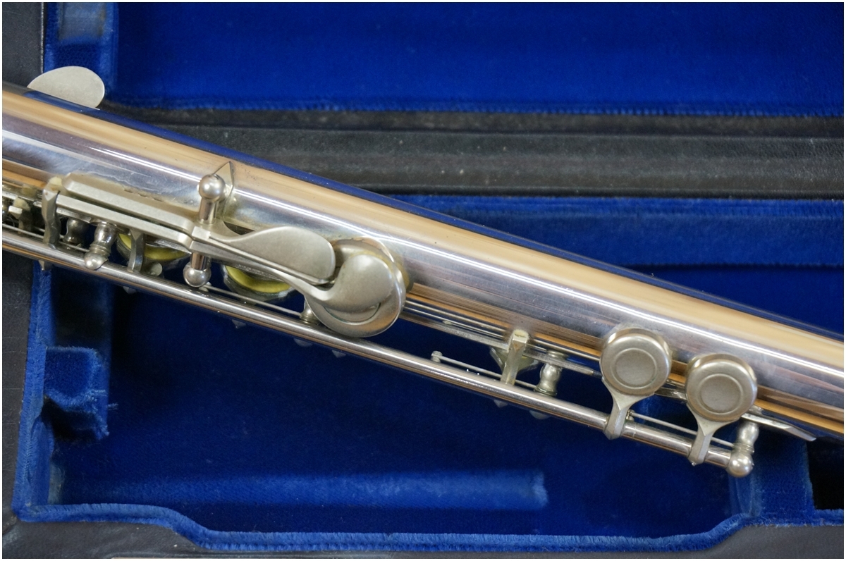 使用に伴うスレキズ・スリキズ・材質特有のクスミございますが、凹みやエクボなどはございません。頭部管はサンキョウの銀製ヘッドに変更されています。各キーの動きや管体のジョイントはスムーズです。タンポにヨゴレはございます。