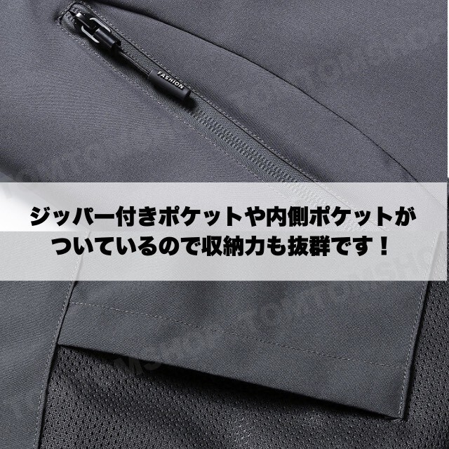 ジッパー付きポケット&内ポケット付きで収納力も抜群!