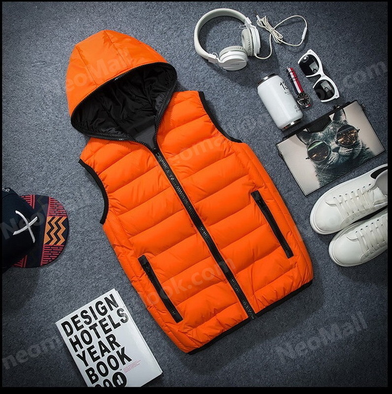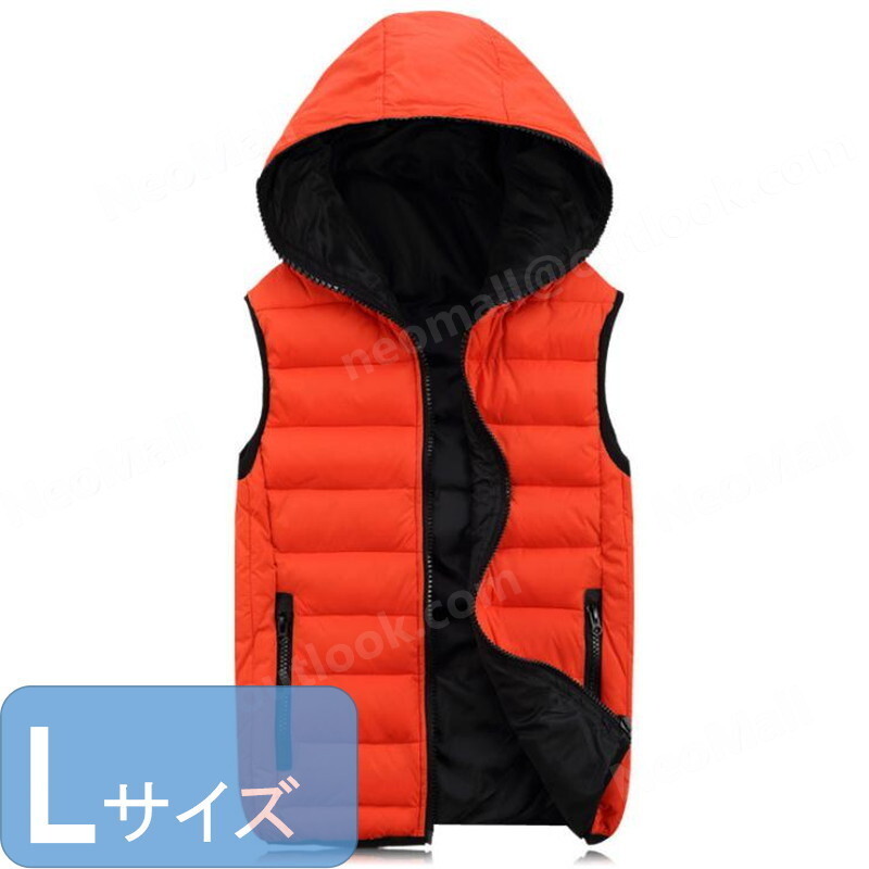 シンプルな メンズ ダウンベスト 003 オレンジ Lサイズ 中綿ダウン 中綿ベスト キルティング アウター 防寒 秋冬 暖かい