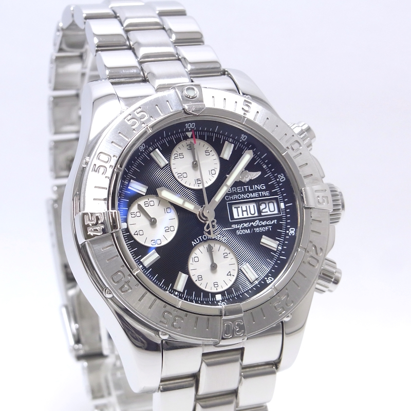 | 型式/仕様 | Ref.A13340 ステンレススチール 自動巻き デイデイト表示 クロノグラフ ねじ込み式リューズ 逆回転防止ベゼル 黒文字盤 |