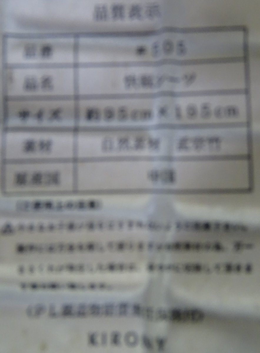 ・品名: 快眠シーツ ・素材: 自然素材(孟宗竹)・販売元:KIRNY・サイズ:95㎝×190㎝ 6.4㎏・R6-10-13.8