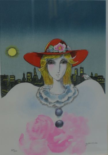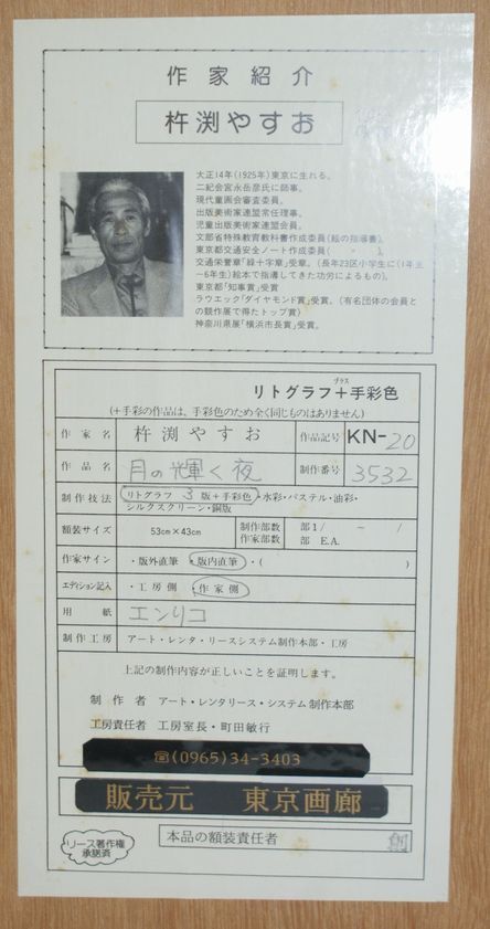 ・作者名:杵渕やすお・ 画題:「月の輝く夜」・技法:リトグラフ (35/200)〈Aー30〉(A1-HIO-R4-6-25-85.8)