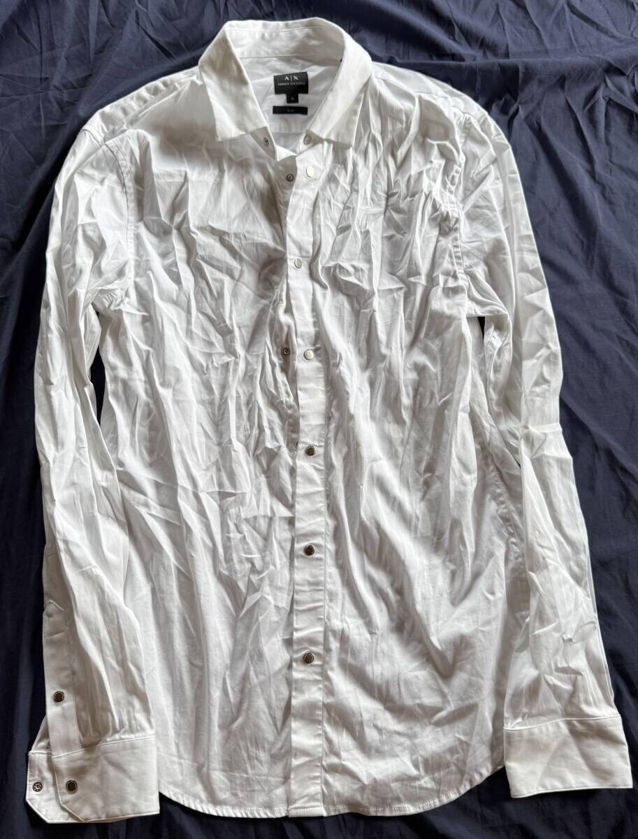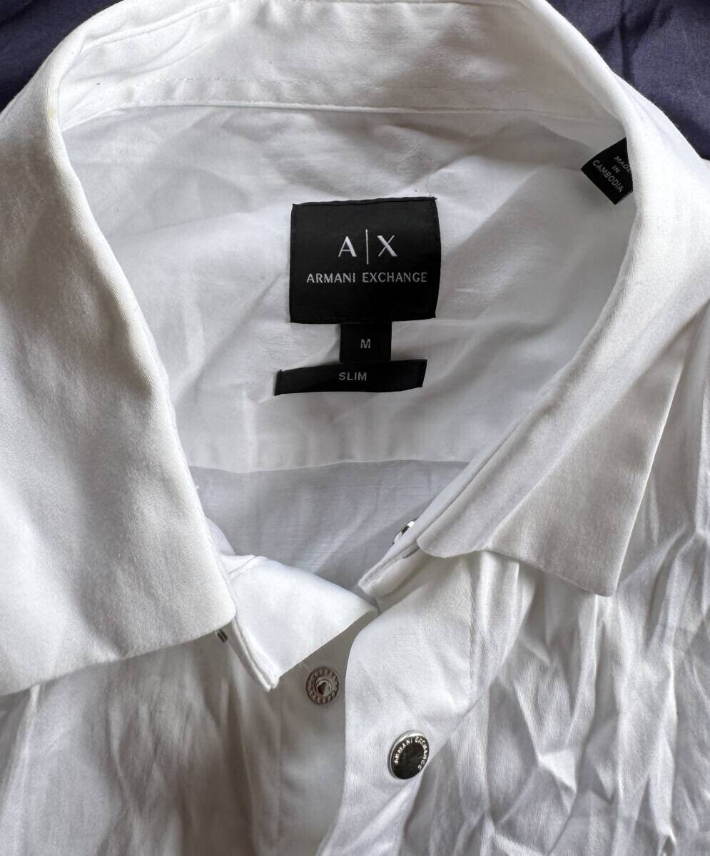 アルマーニエクスチェンジ 長袖シャツ シルバーボタン 胸元にロゴ 高級タイプ M