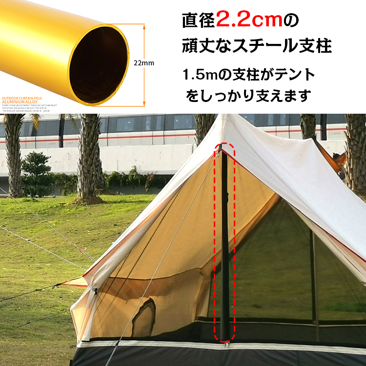 【素材】:220Gポリエステルコットン(シート)/ 190Tポリエステル(テント下部)/スチール(支柱)