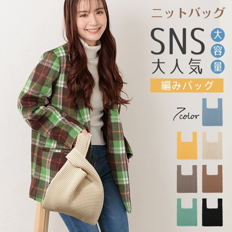 送料無料 トートバッグ ハンドバッグ SNS話題 ミニトートバッグ ニットバッグ レディース 軽い 軽量 縦型 ニット 旅行 クロシェ編 ap123