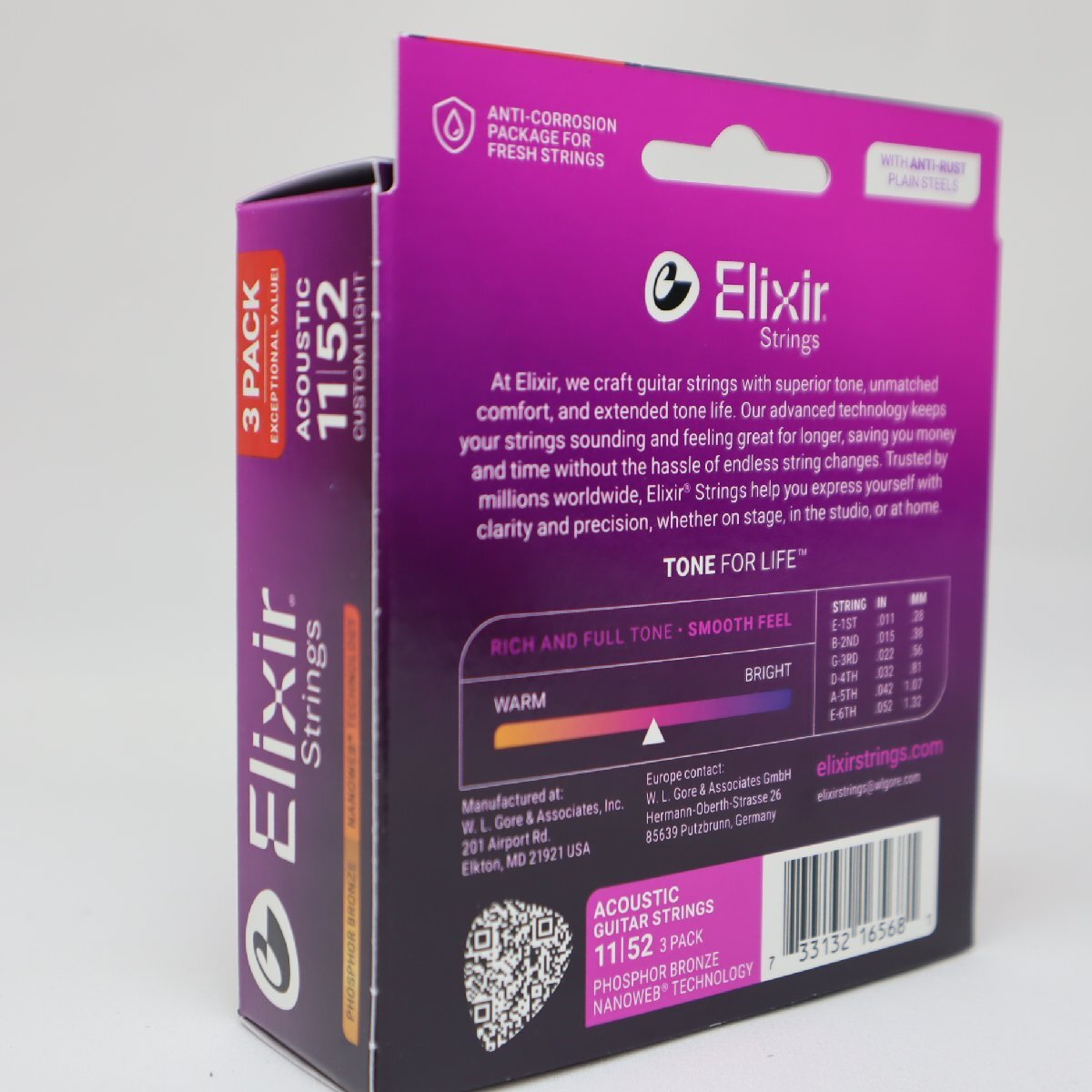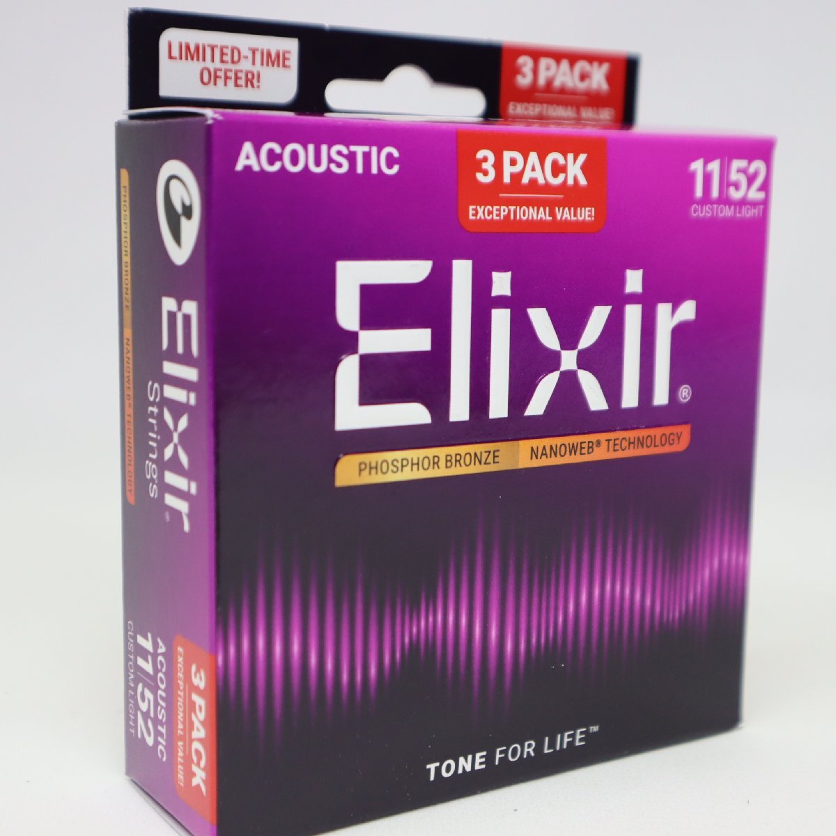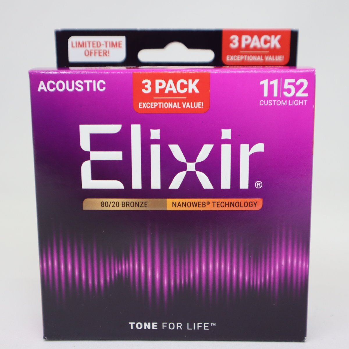 ●Elixir アコギ弦 NANOWEB 80/20ブロンズ Custom Light3SET .011-.052