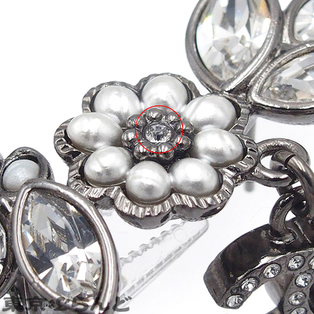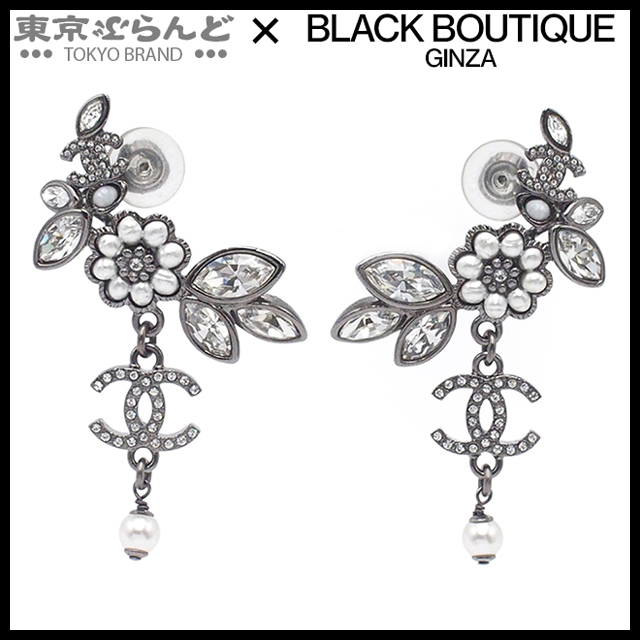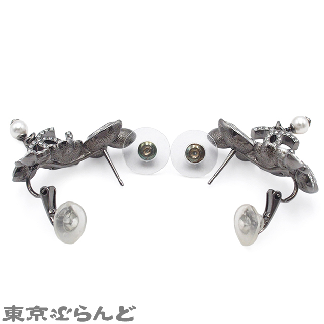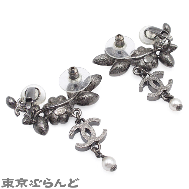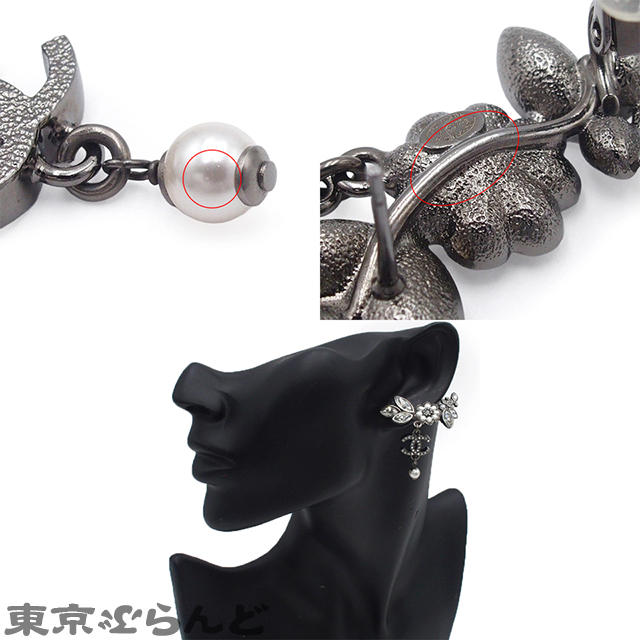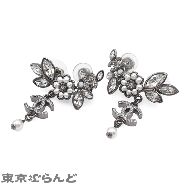 001014077 シャネル CHANEL ピアス ガンメタリック メタル コスチュームパール ラインストーン フラワー ココマーク B22K レディース