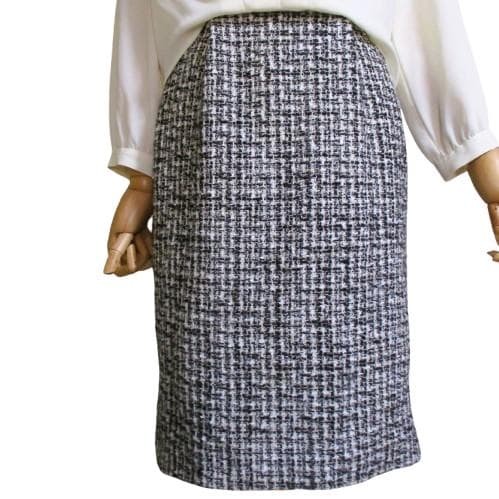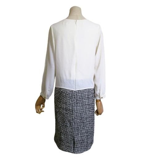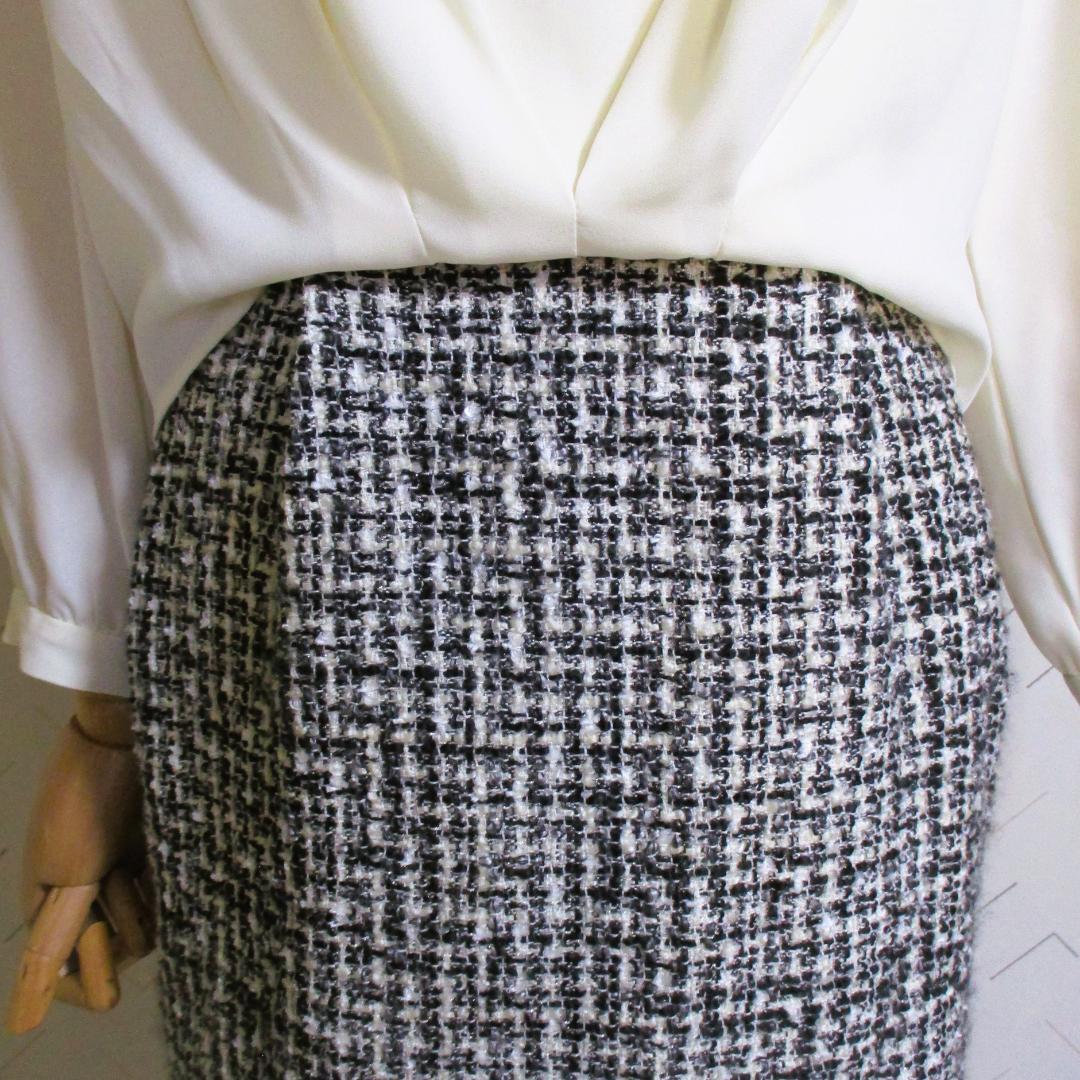 スカート部は黒×白のツィード素材にラメが入り上品で格調高い印象となっています