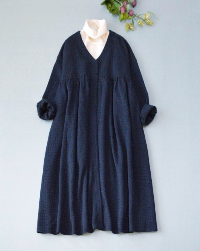 Vネック切替ギャザー前開きな大人可愛いワンピース♪