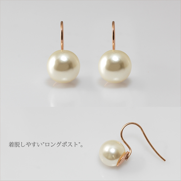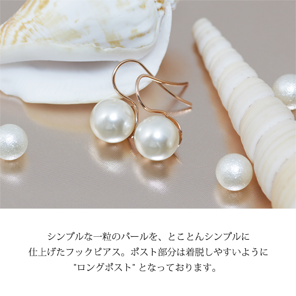 新品/ピアス/K18GP/一粒/パール/真珠/フック/シンプル/18金/ピンクゴールド/レディース/両耳/上品/フォーマル/卒業式/入学式/女性