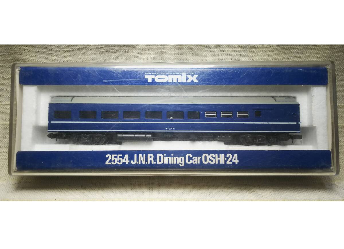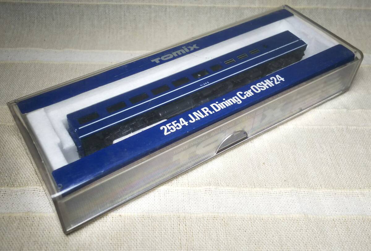 古い鉄道模型【「Tomix 国鉄客車オシ24形特急用食堂車」箱付/ 2554 J.N.R.Dining Car OSHI-24 /Nゲージ/TOMY】ブルートレイン客車②/トミー