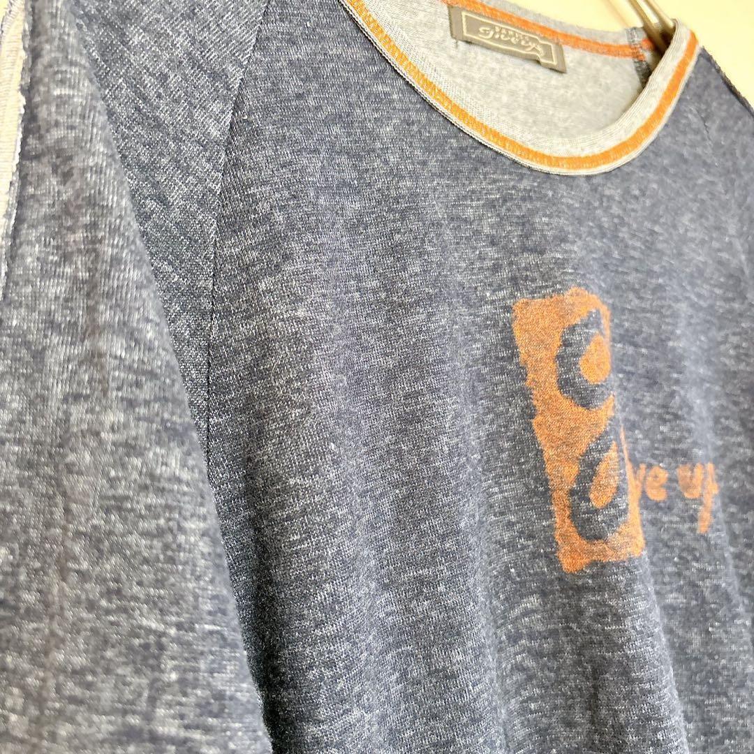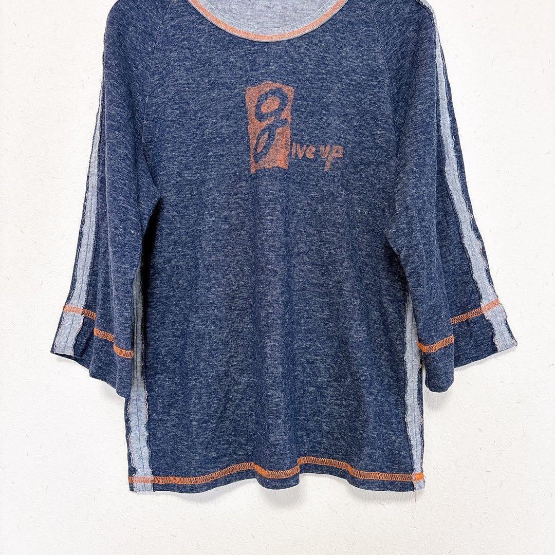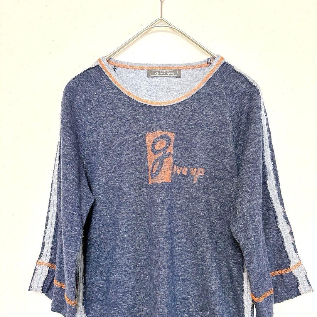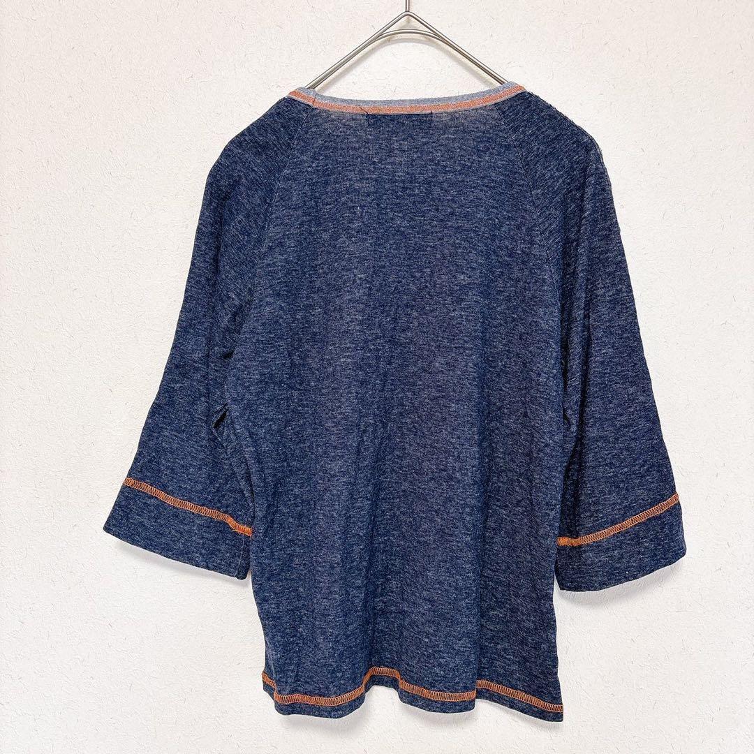 DAMISS 七分袖カットソー M ネイビー デニム風ゆったりロゴ入り 1CF6A9