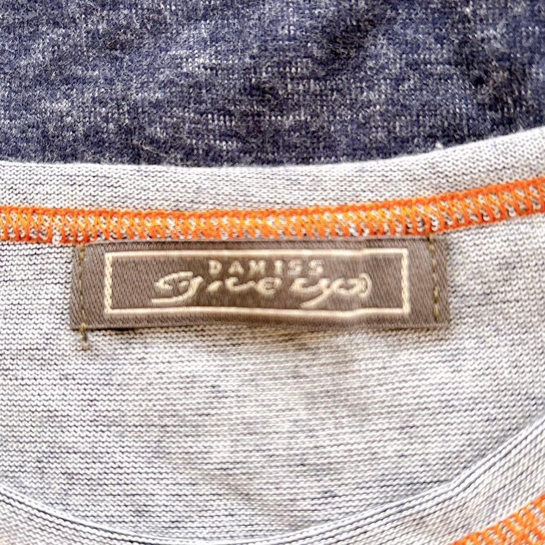 #DAMISS #ダミス #カットソー #七分袖 #デニム風トップス #ネイビーコーデ #オレンジステッチ #レディースカジュアル #ナチュラル服 #ゆったりトップス #大人カジュアル