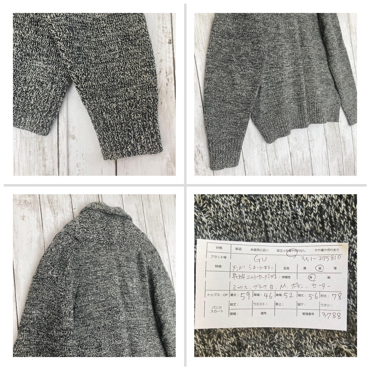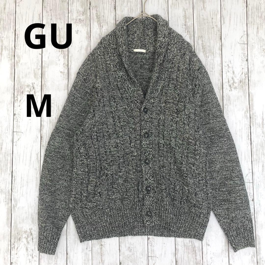 【GU】ジーユー ミックスグレー系ショールカラー長袖ニットカーディガン Mボタン AE45CF