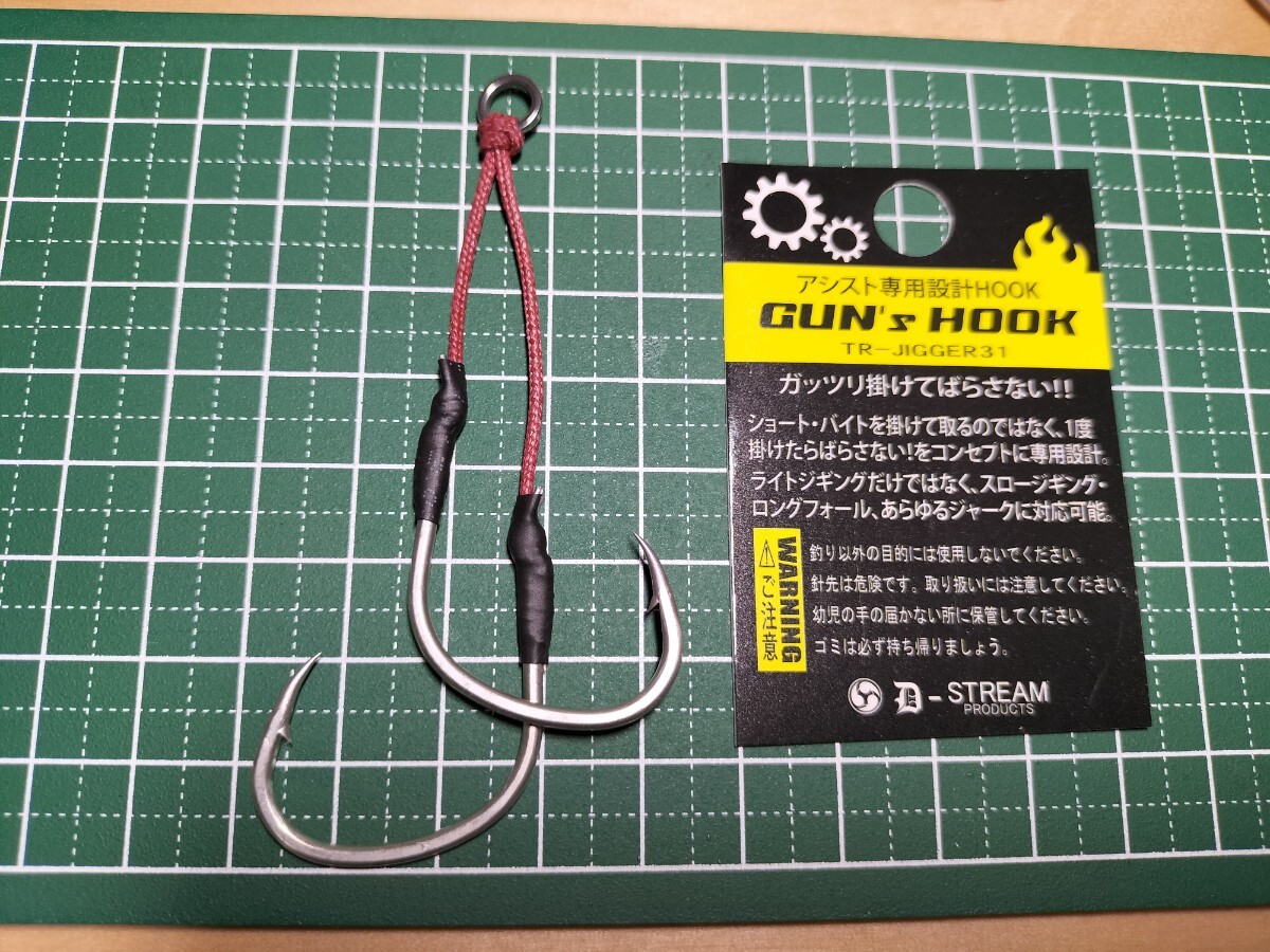 D-stream(剣屋)、ガンズフック3/0で作成しました、ジギング用段差ツインアシストフックです