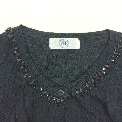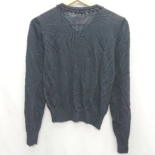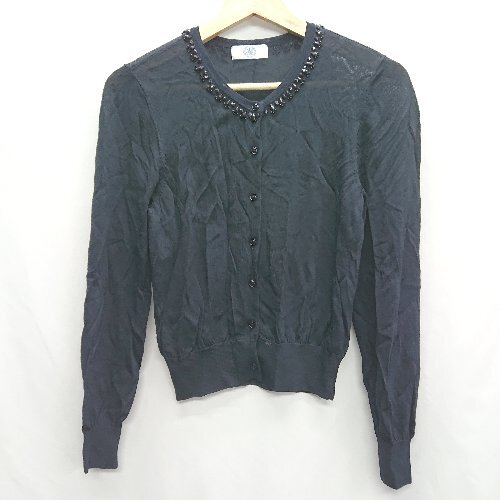 ◇ ⊂ J.PRESS ジェイプレス ビジュー付き 長袖 カーディガン サイズM ネイビー系 レディース E