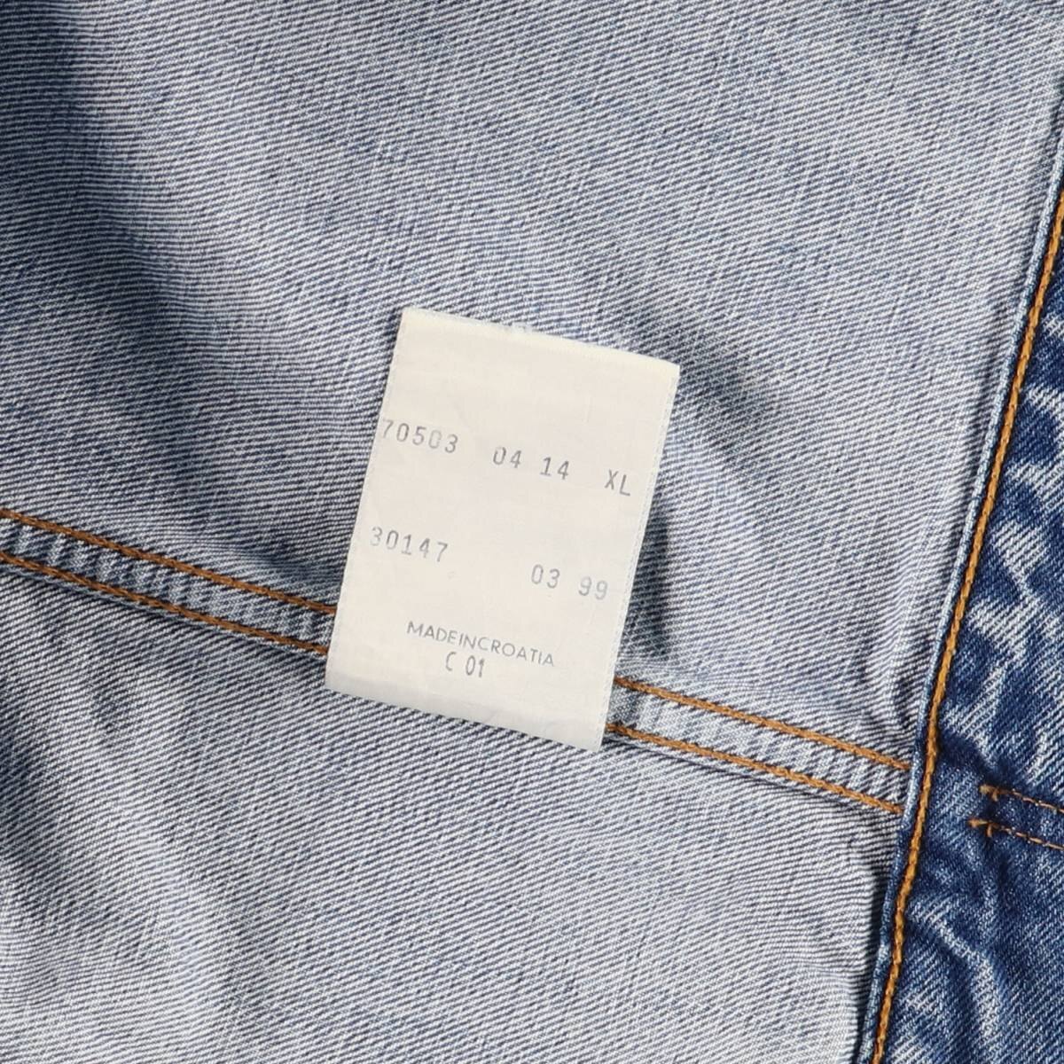 | 表記サイズ: XL 着丈: 65.5cm 身幅: 63.5cm 肩幅: 49.5cm 袖丈: 65cm ![]() | ![]() ランク:C USEDデニムですので使用感、擦れ、色落ちなどございますが、まだまだご愛用していただけます。 古着という事をご理解の上ご注文よろしくお願いします。 【状態追記】 ●前、腹部・裾・左右腕・左右袖先に汚れ ●前、右肩・裾に擦れ ●後、肩・左右袖先に汚れ ●後、左右袖先に擦れ ●内側、襟全体・左右腕全体・左右袖先全体に汚れ ●前内側、腹部前立て裏・裾前立て裏に汚れ ●前内側、裾前立て裏に擦れ ●前内側首元・左右肩・左胸・左右腹部・左右裾に汚れ ●後内側、左右肩・背中に汚れ ●後内側、左右袖先前立て裏に擦れ |