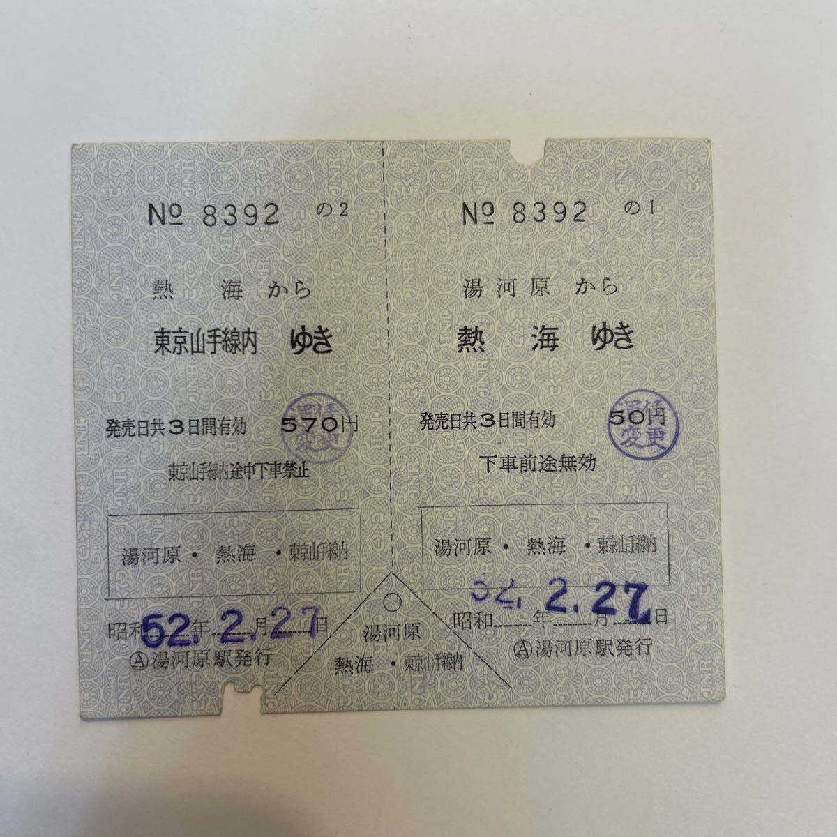 国鉄 連続乗車券 湯河原から熱海から山手線内ゆき S52