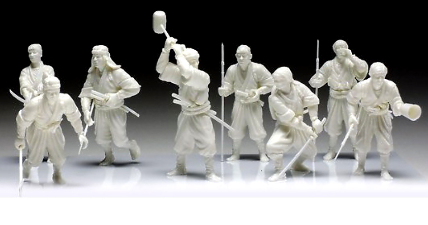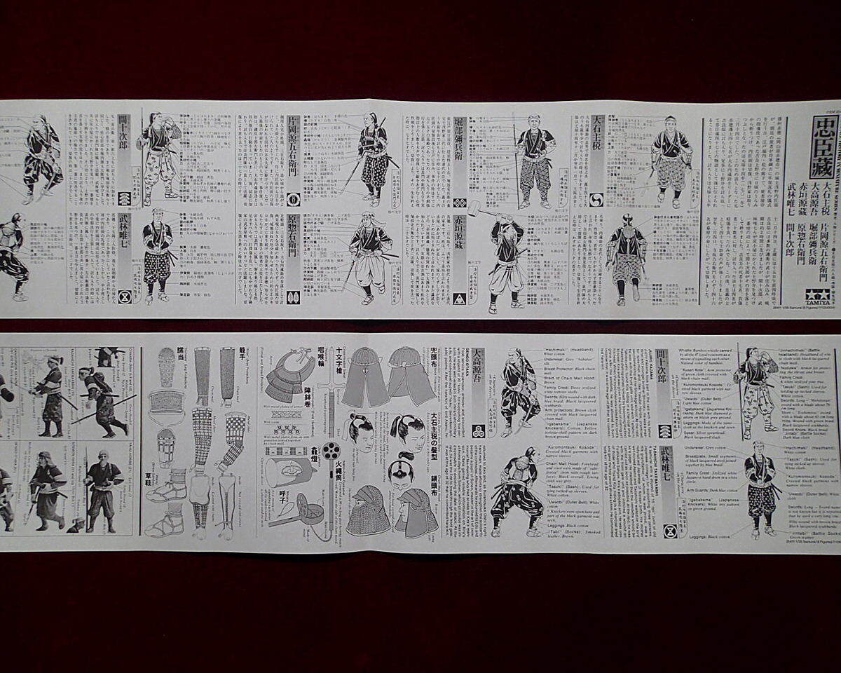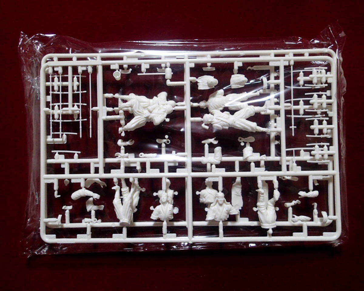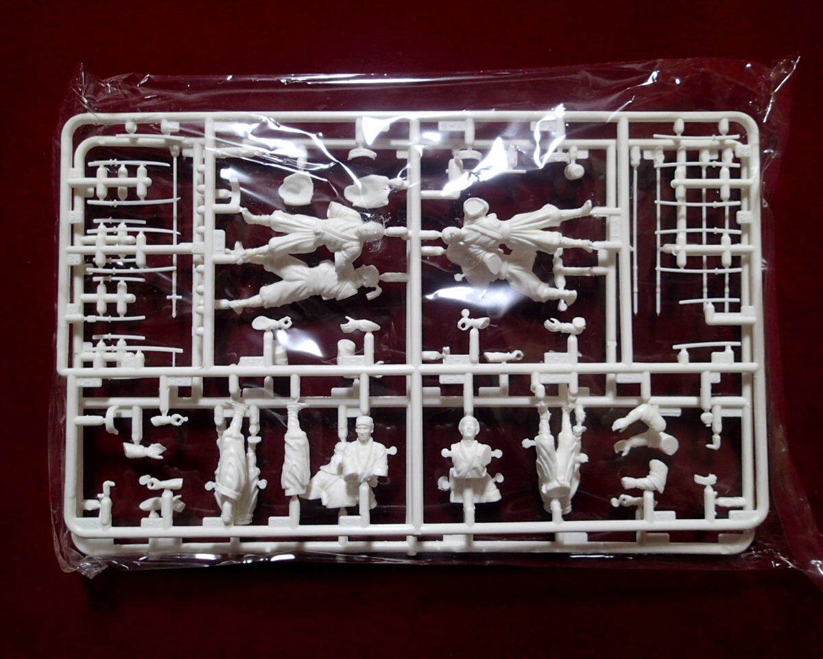 ●忠臣蔵から、赤穂義士・討ち入り姿の大石主税、堀部弥兵衛、大高源吾、片岡源五右衛門、赤垣源蔵、原惣右衛門、武林唯七、間十次郎の8体がセットされています。衣装、武器等も史実に基づき忠実にモデル化されています。現在手に入り難い希少キットです。
