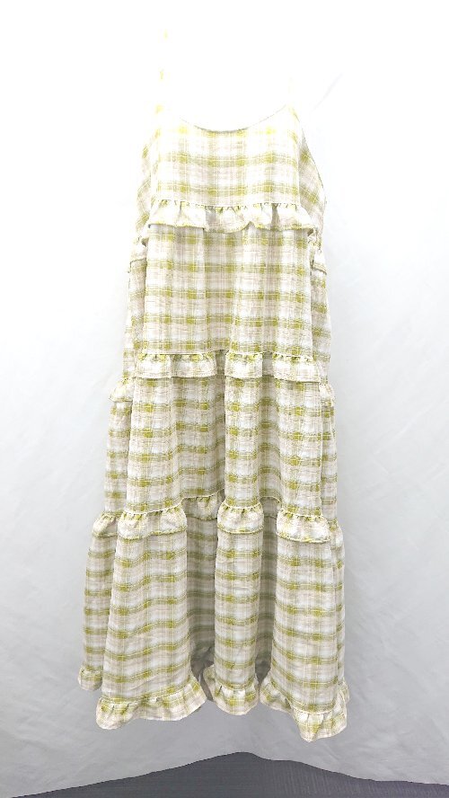 ◇ ⊂ CPCM シーピーシーエム チェック柄 ロング キャミワンピース サイズF グリーン系 レディース E