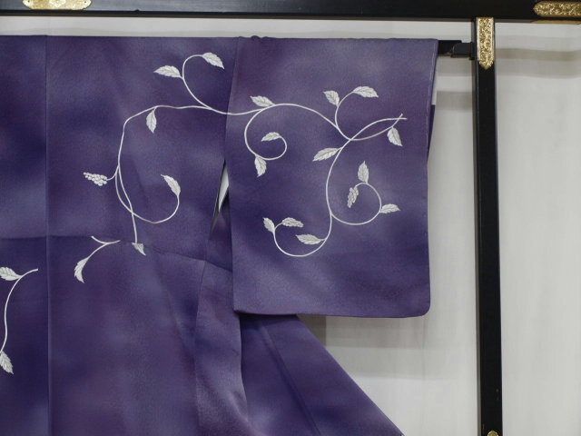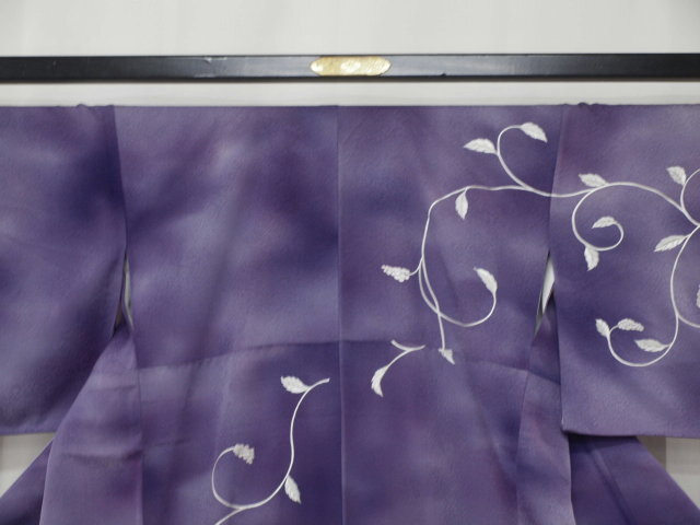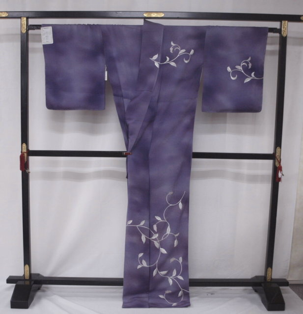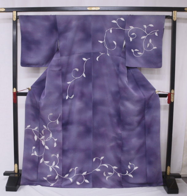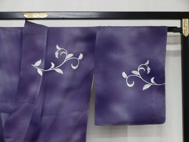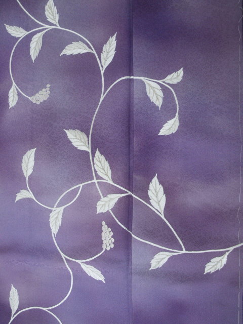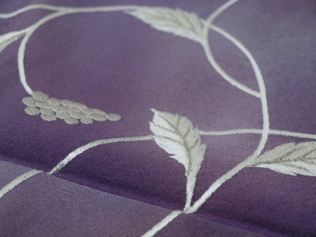 古代紫のぼかしに葡萄唐草の刺繍が上品で美しい訪問着です価値あるお着物ですのでお祝い行事やパーティなどにお召しいただけます<サイズ>身丈約163cm 袖丈約49cm 裄約68cm(サイズは測り方により多少の誤差がでます)<素材>表地・裏地:絹100% <発送>100cm以内で納品させて頂きます*お電話でのご注文も受け付けています。TEL03-3663-7071*平日10時から17時まで営業しています。ご覧になりたい方は御連絡の上ご来店ください<お問い合わせ・発送>土曜・日曜・祝日を除く10時から17時まで